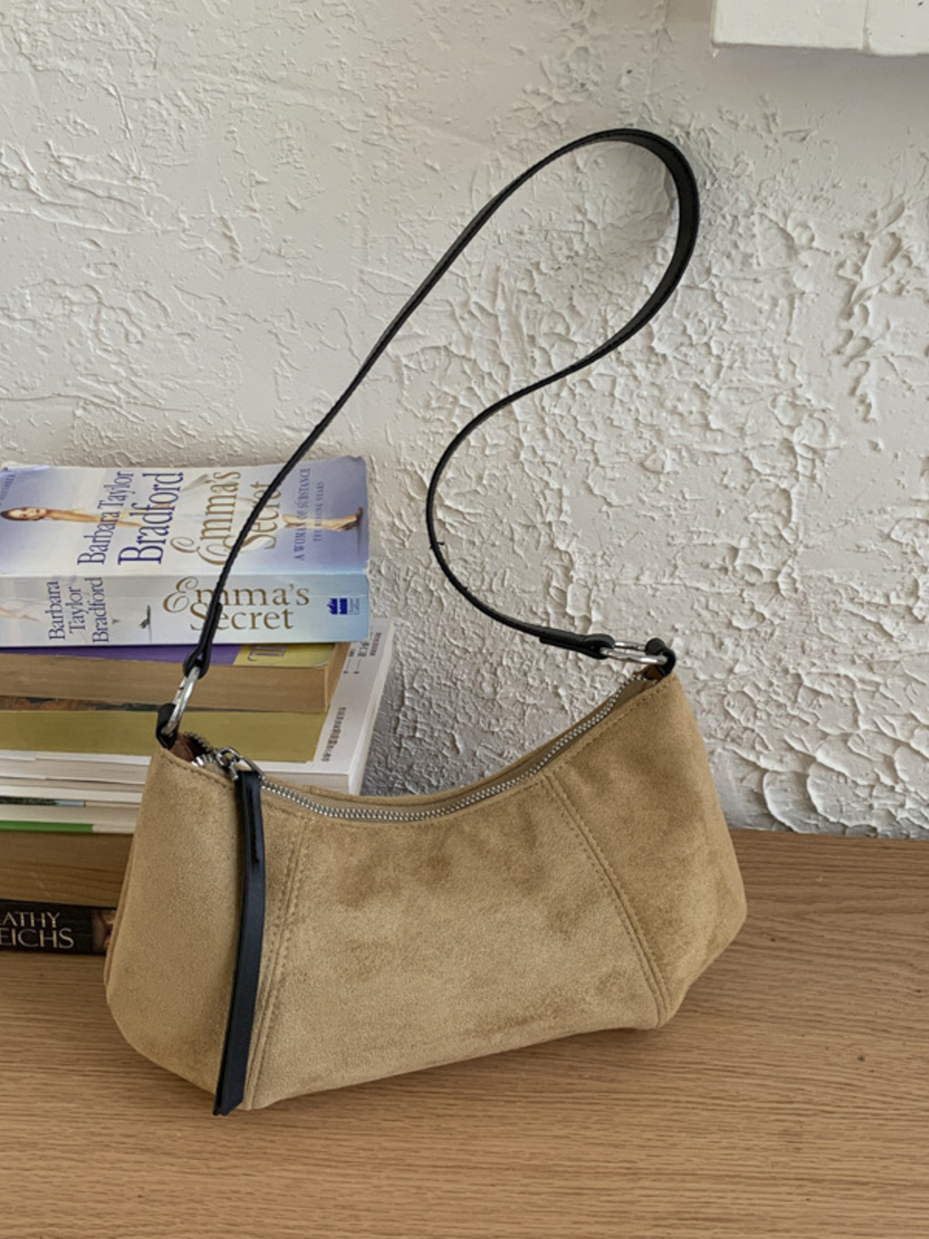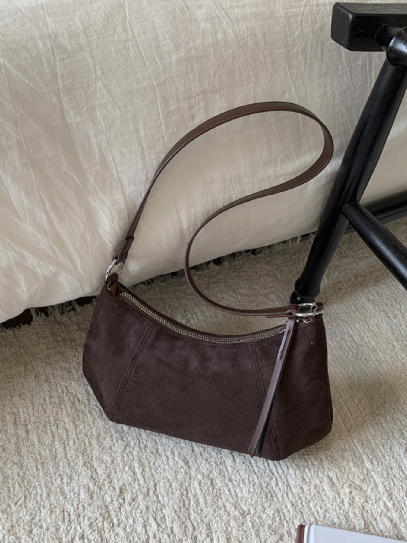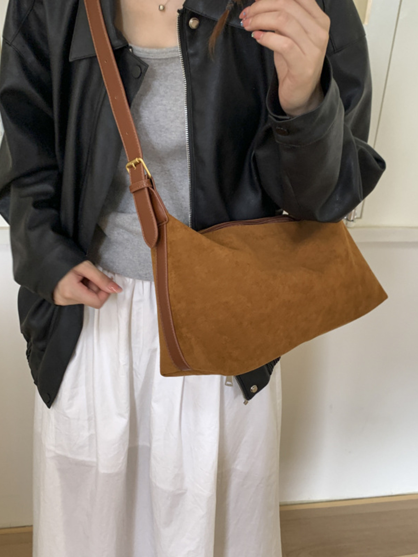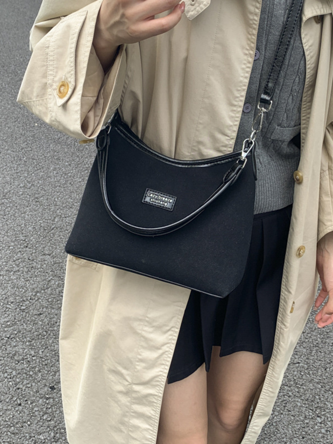 Fame Panel Stitch Crescent Leather Shoulder Bag