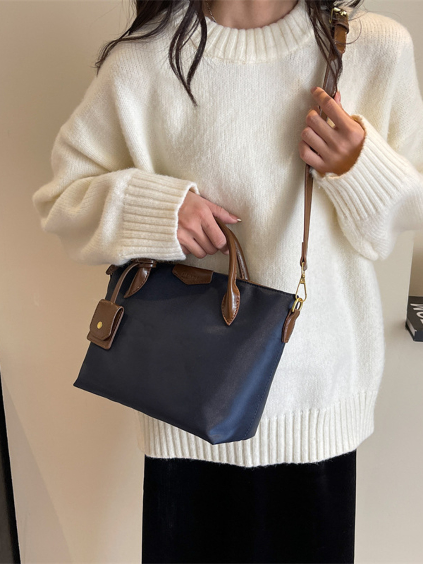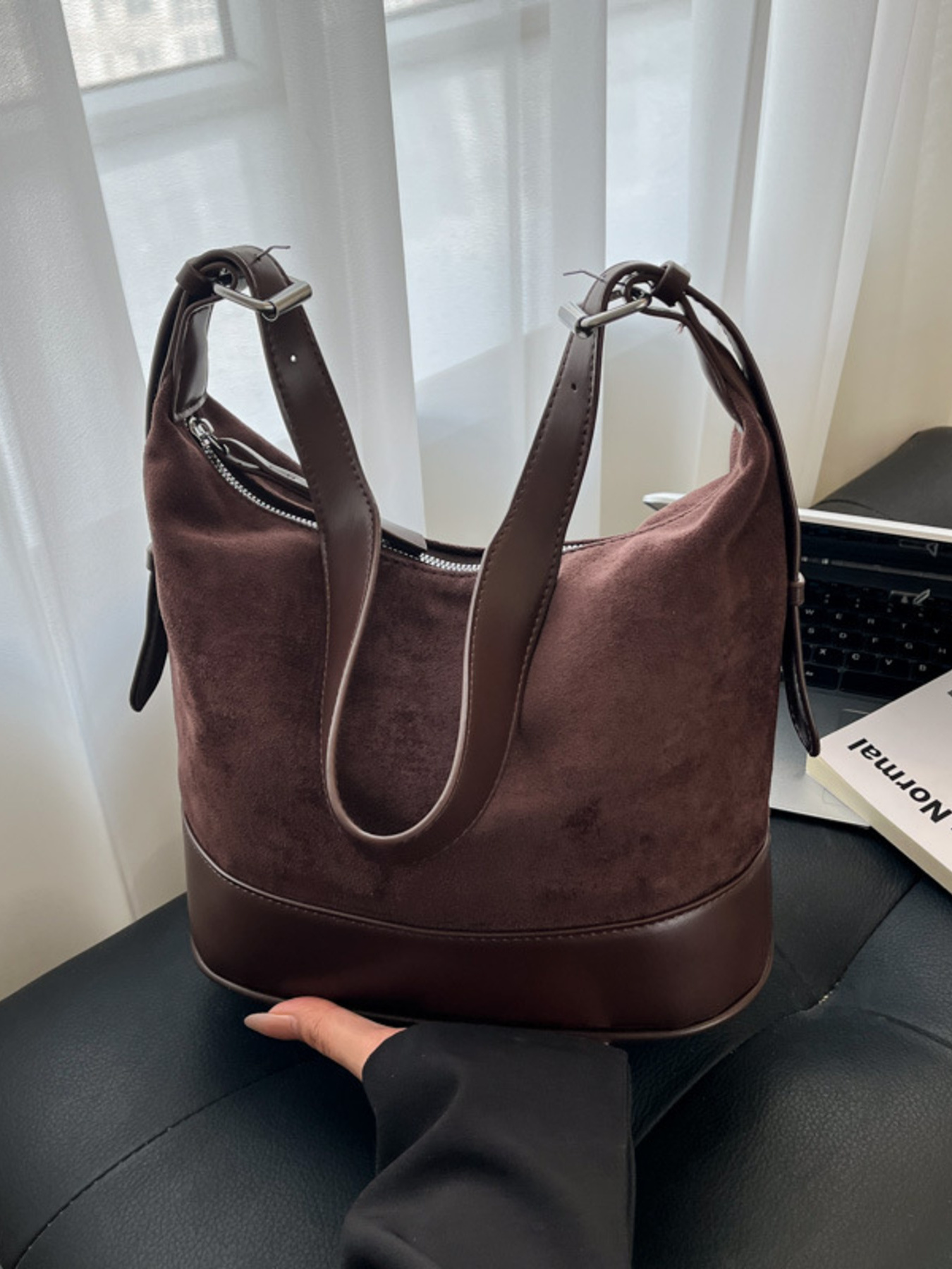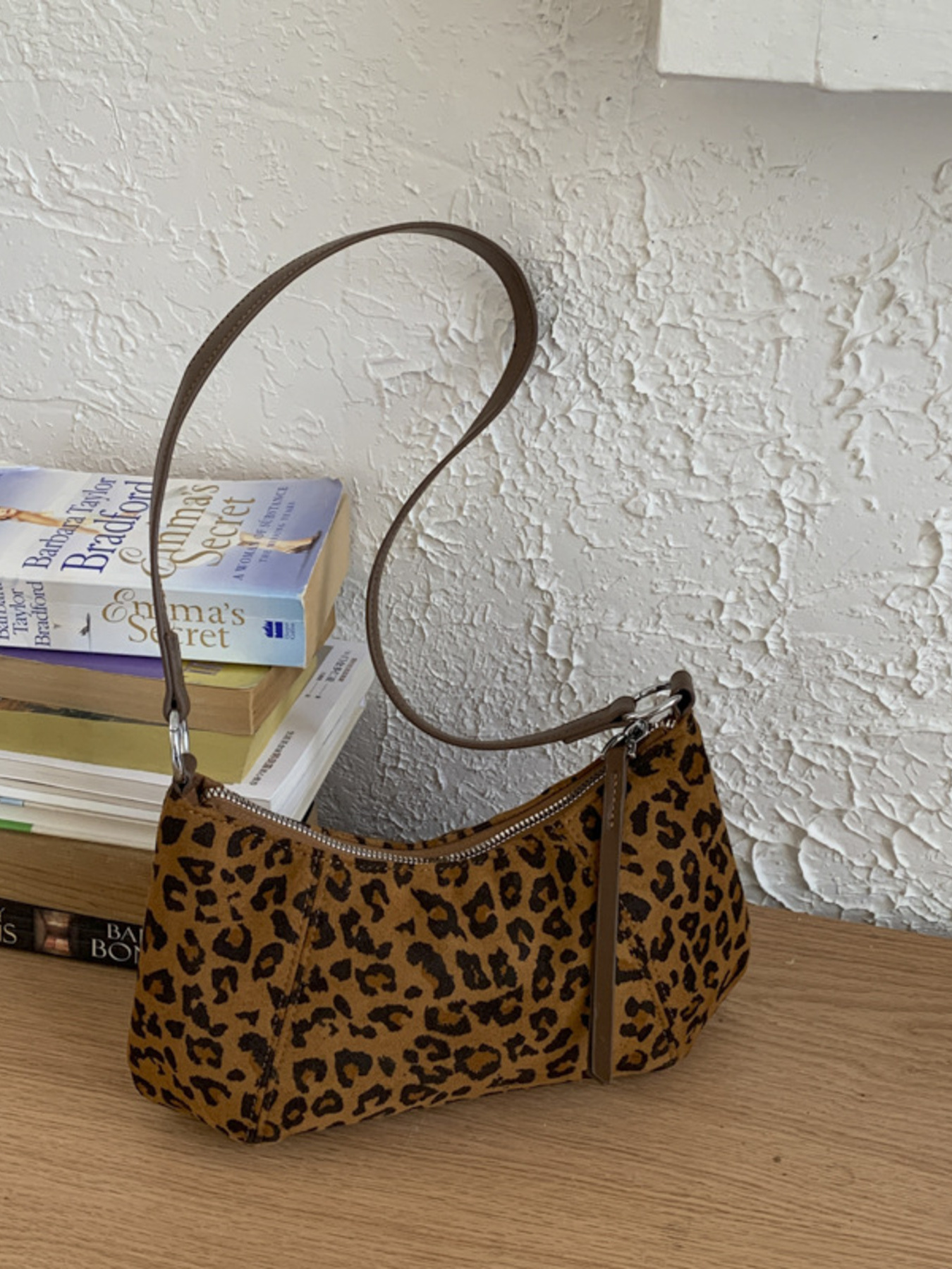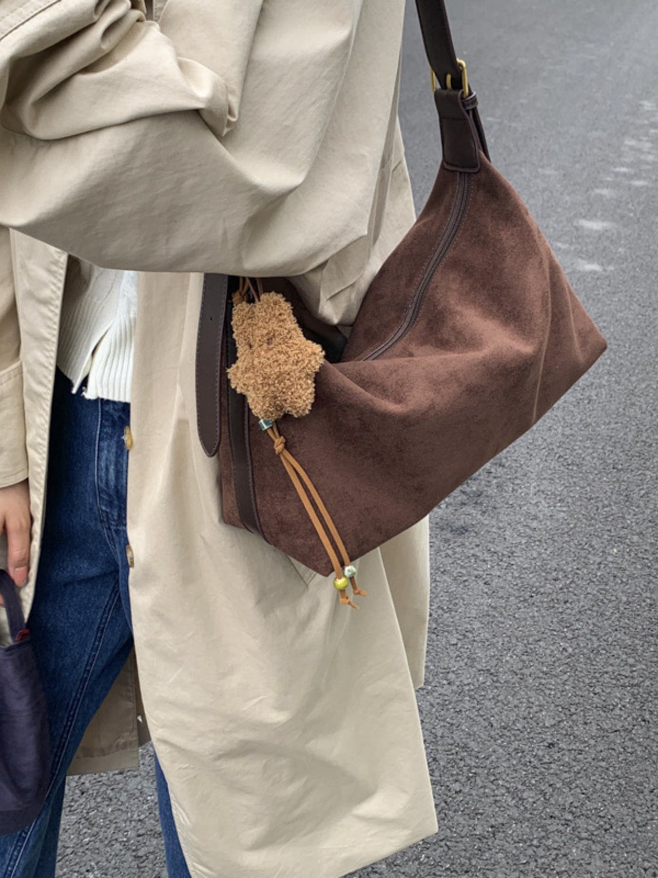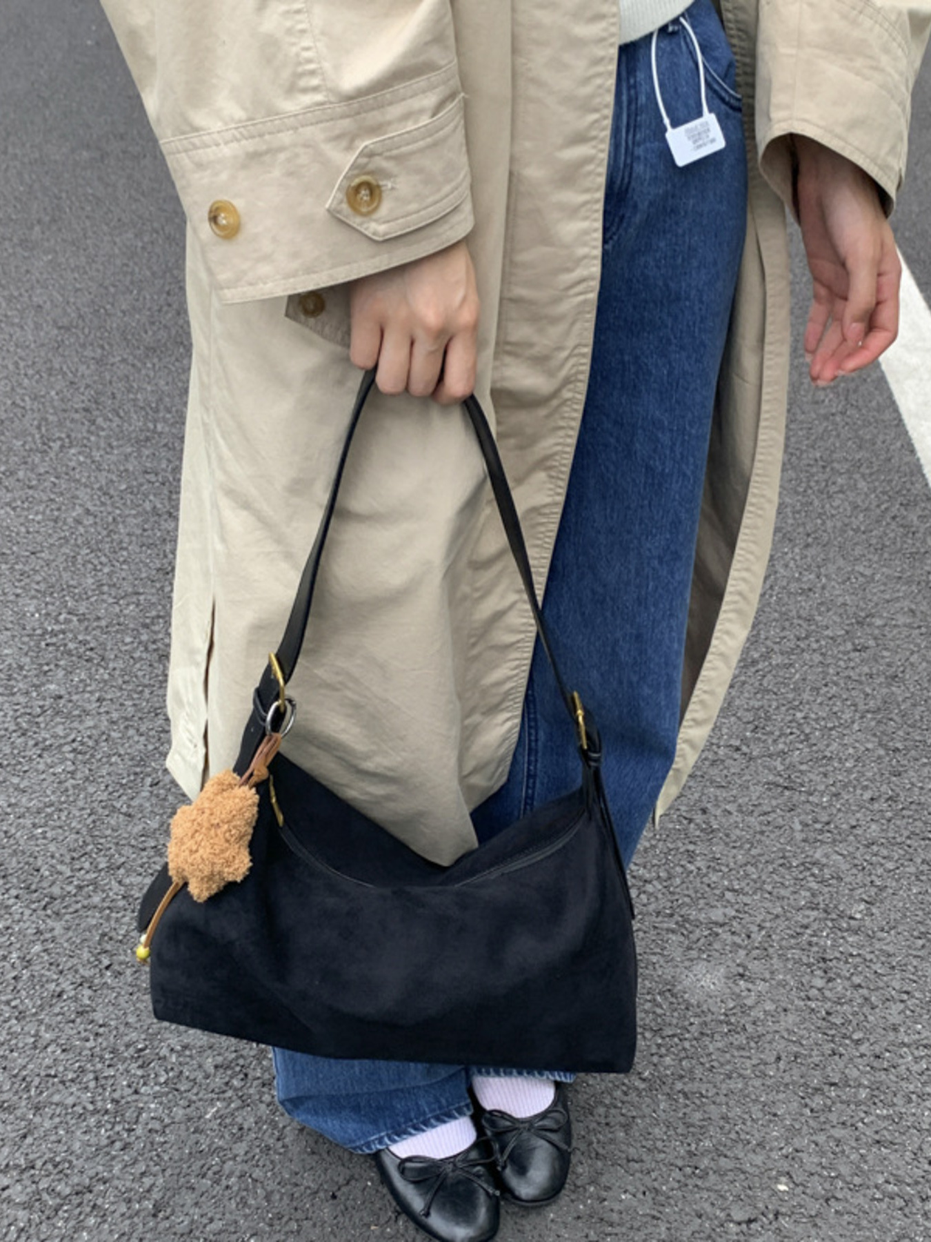 Fame Panel Stitch Crescent Leather Shoulder Bag