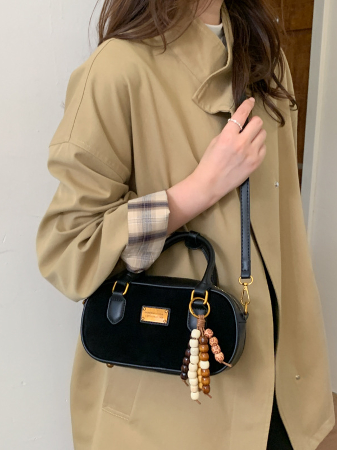 Barrel Crossbody Bag with Detachable Charm