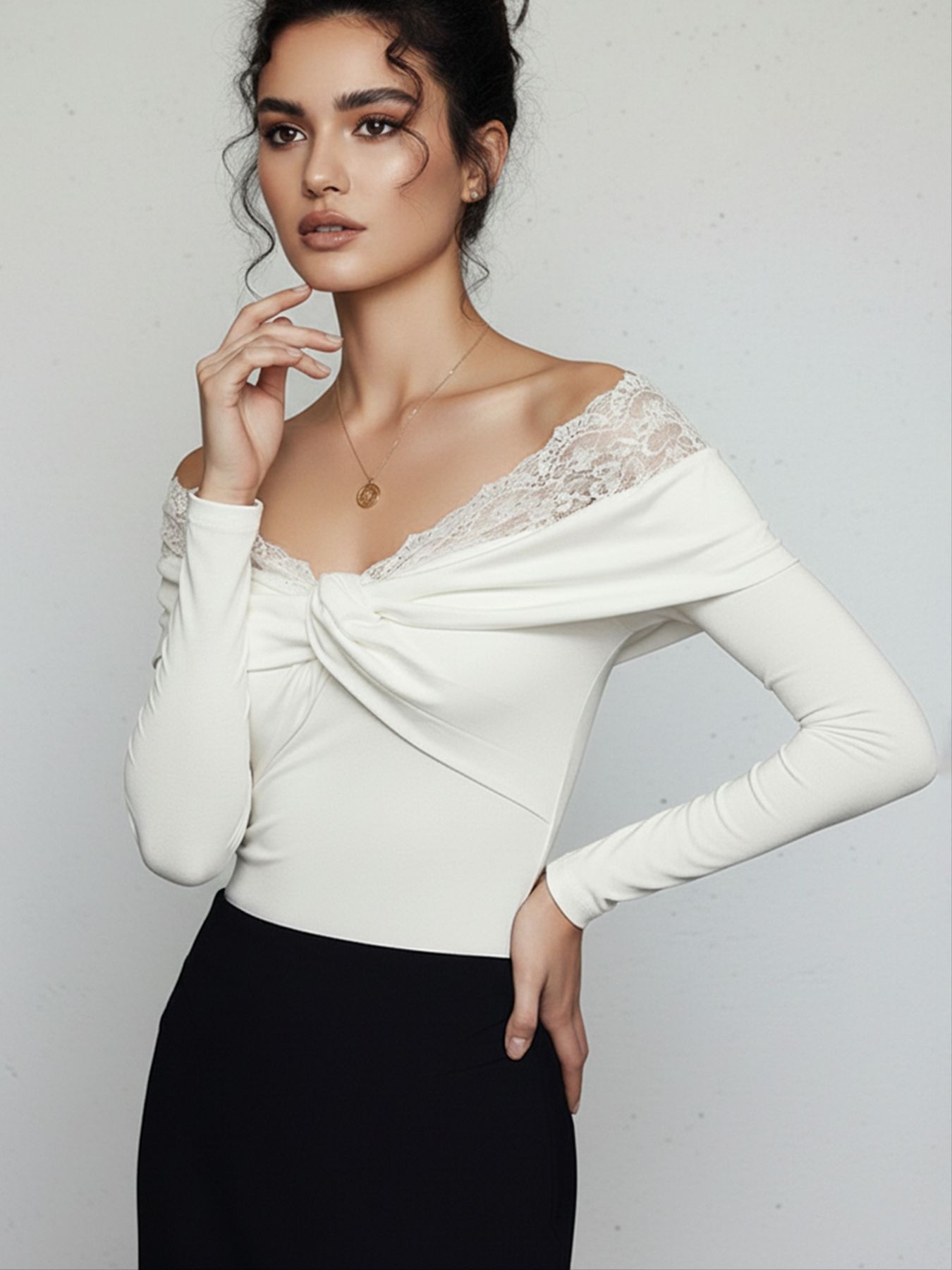 Lace Detail Off-Shoulder Long Sleeve Bodysuit