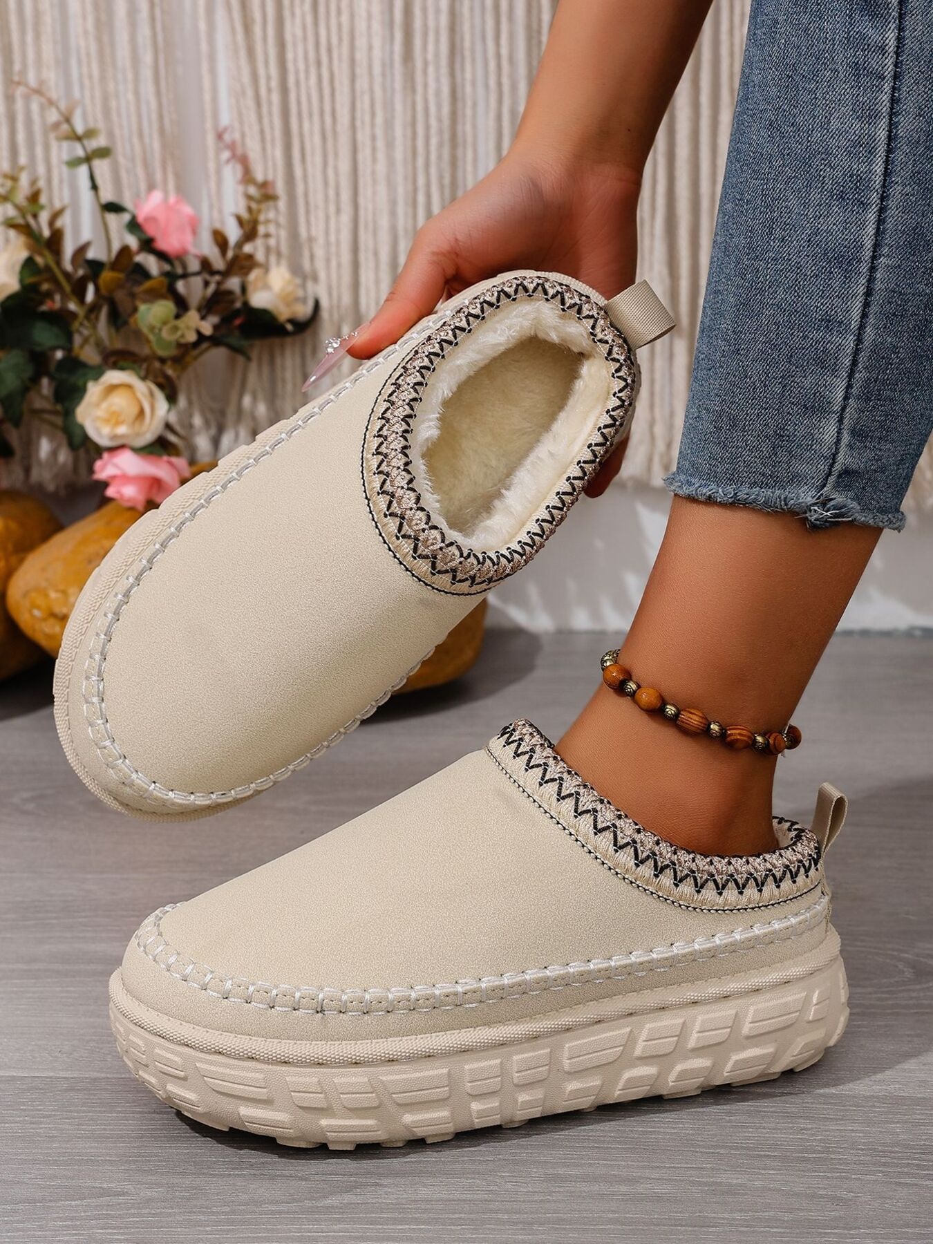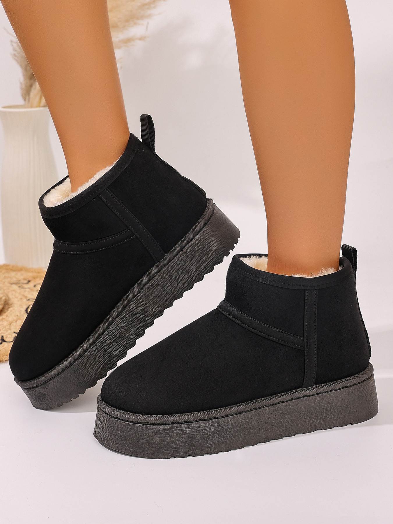 Platform Winter Ankle Boots with Cozy Fleece Lining