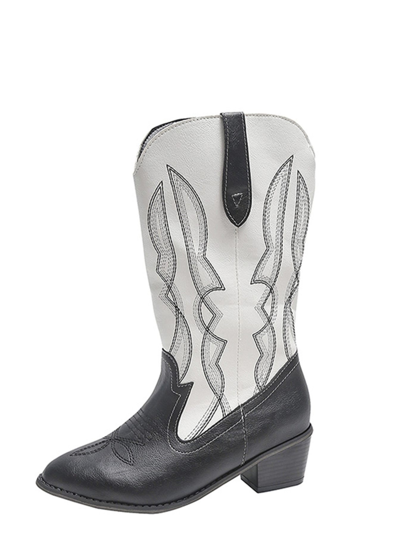 Western Cutout Pattern Block Heel Boots