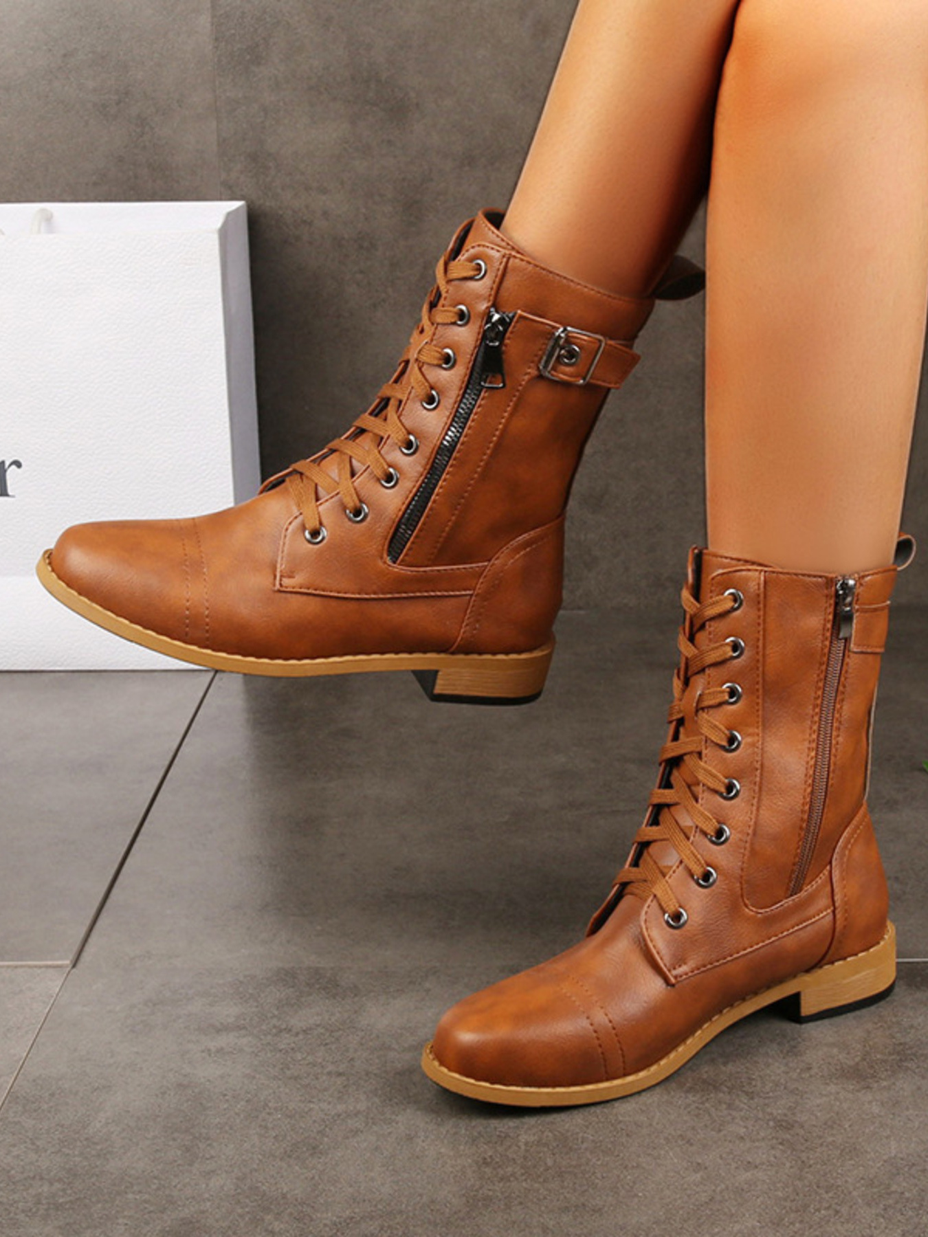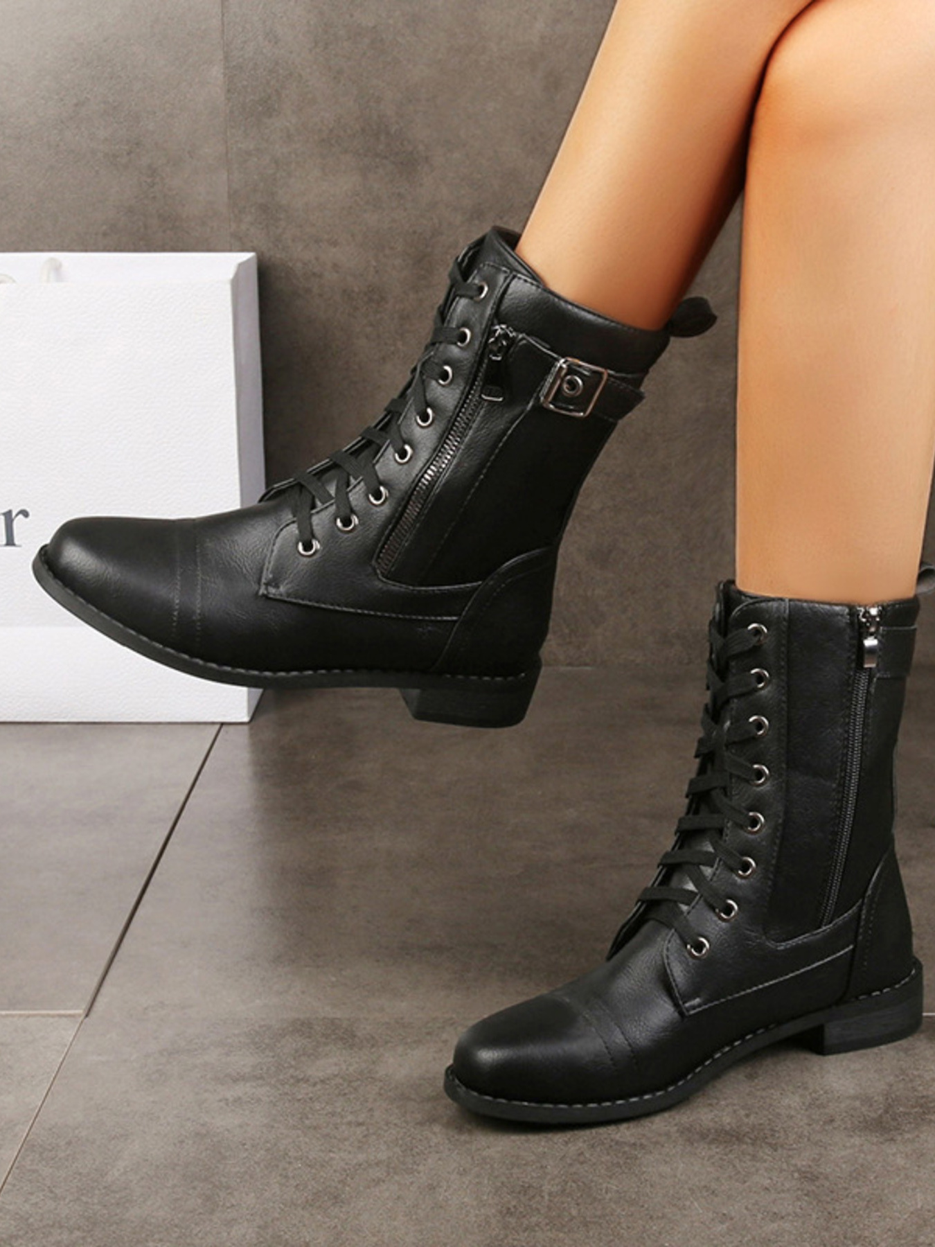 Lace-Up Boots with Side Zipper