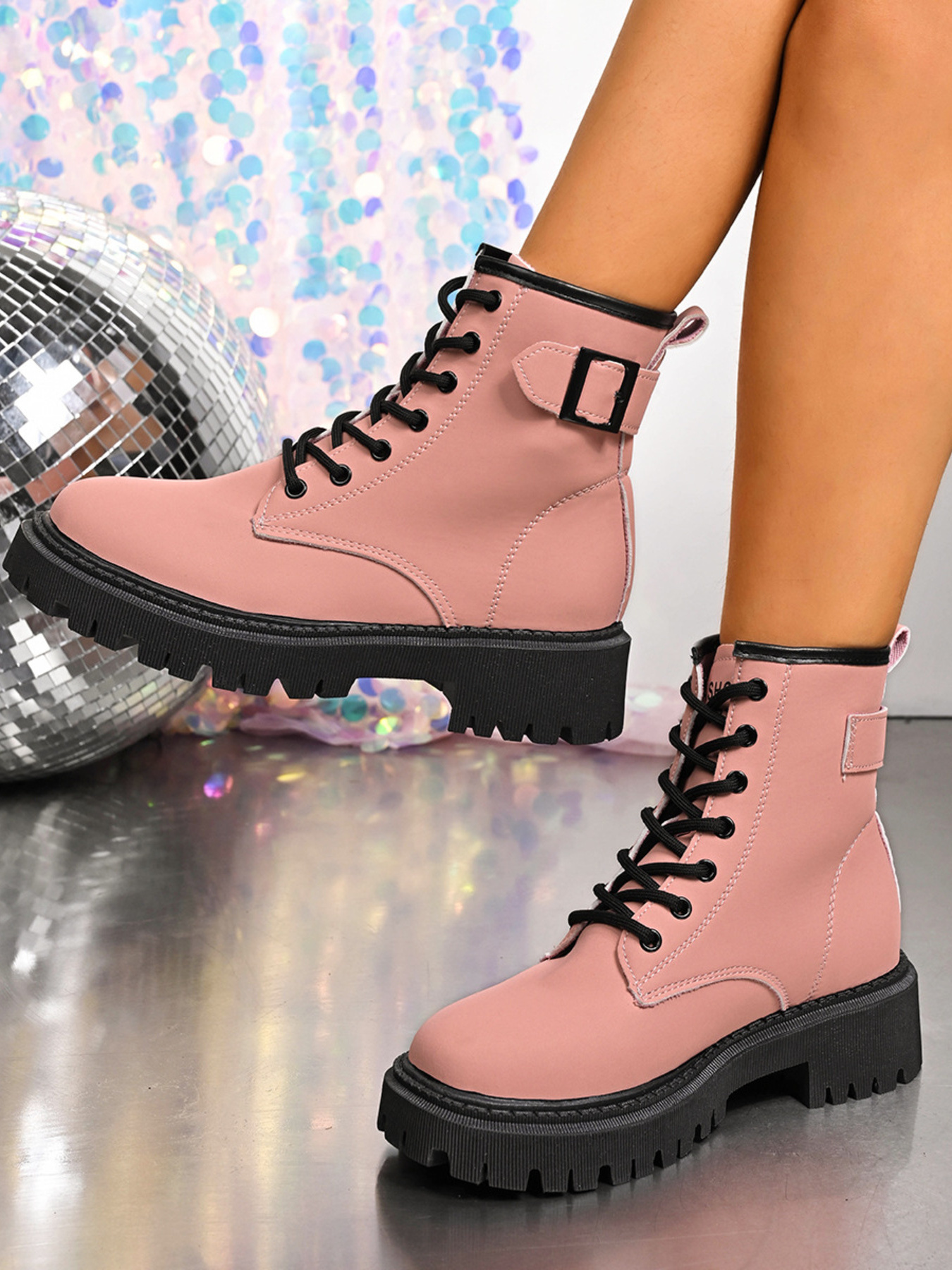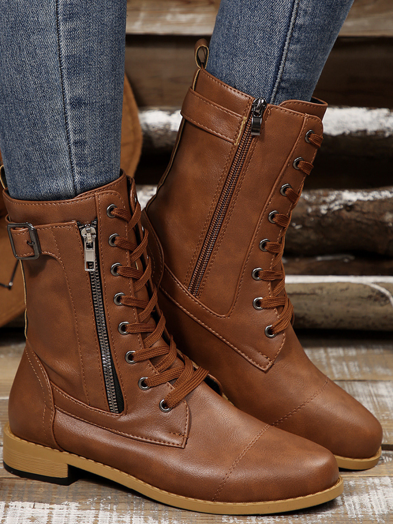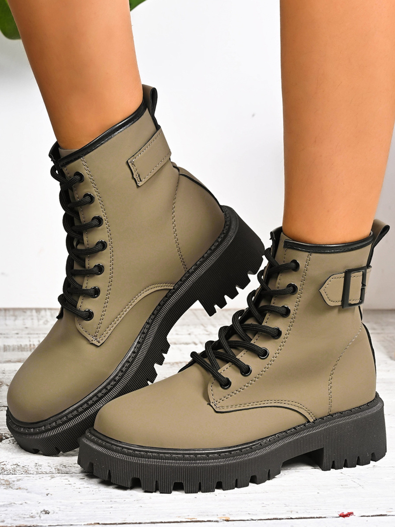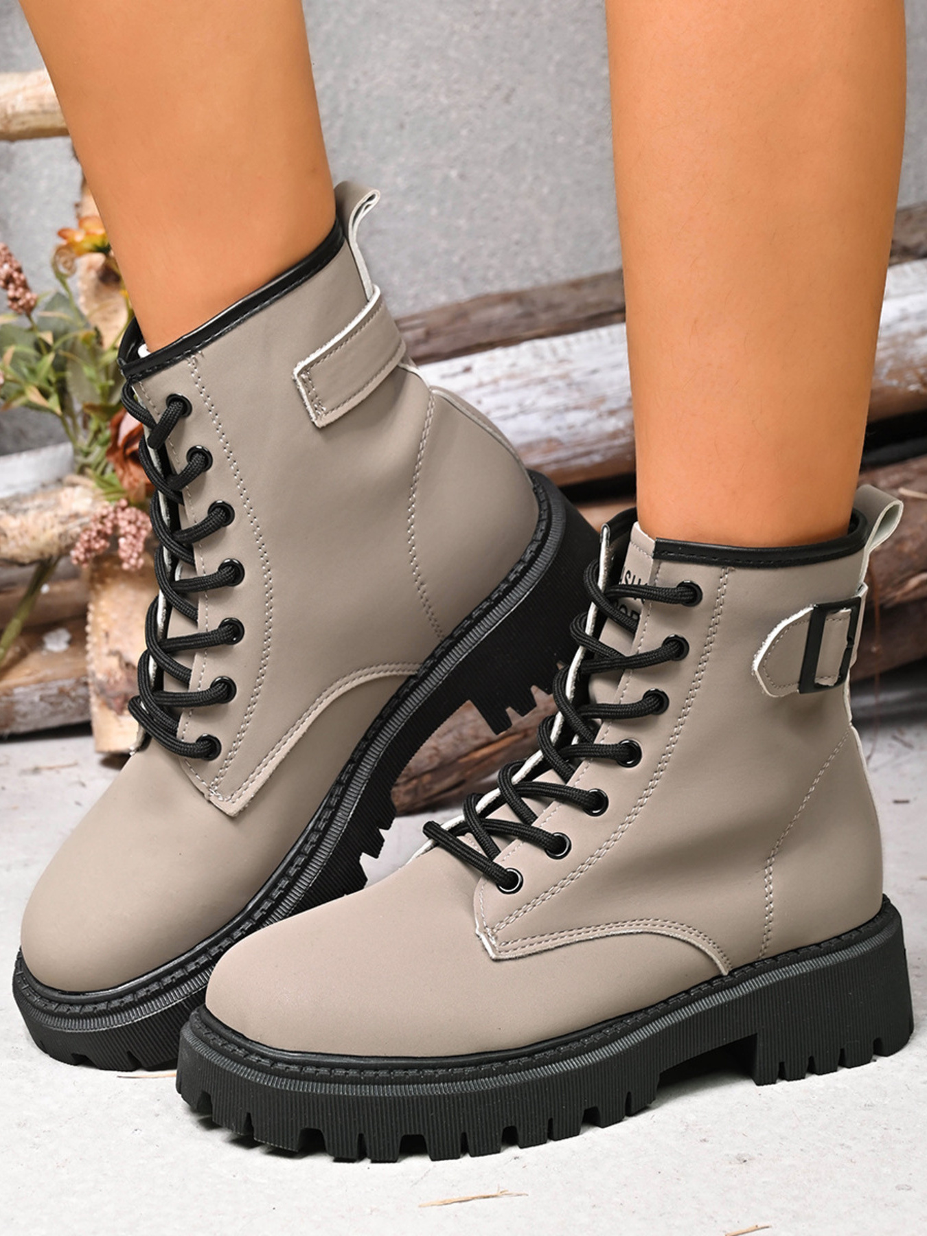 Lace-Up Boots with Buckle Straps