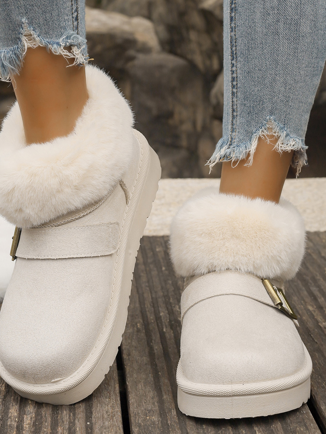 Fur-Lined Buckle Winter Ankle Boots