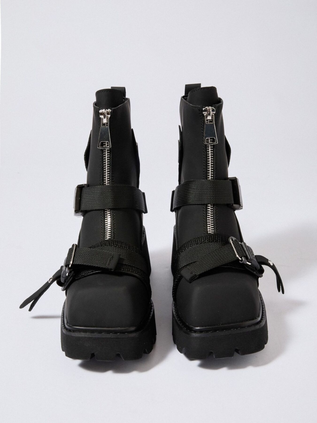 Chunky Platform Boots with Buckle Straps and Front Zip