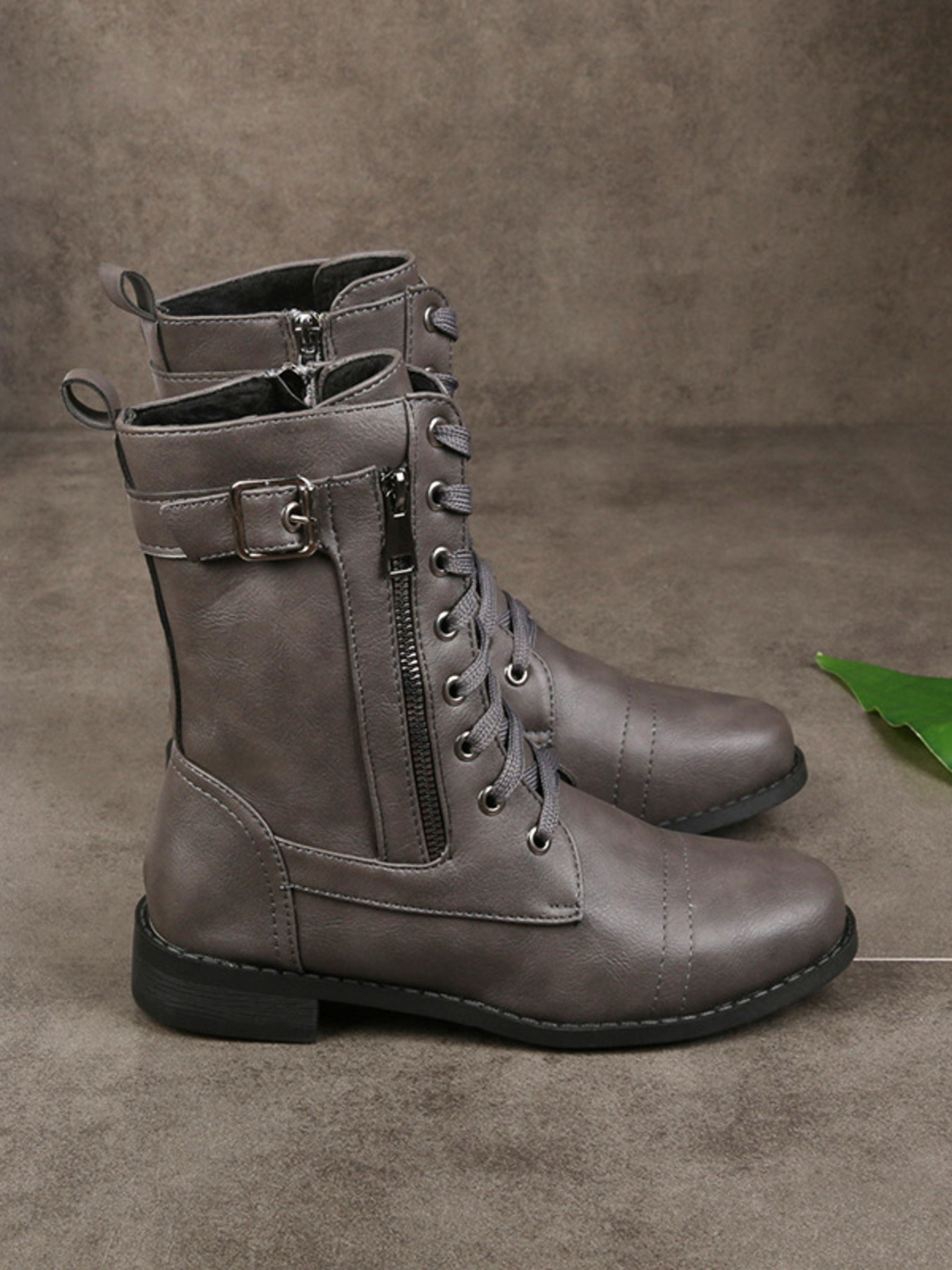 Lace-Up Buckle Detail Boots