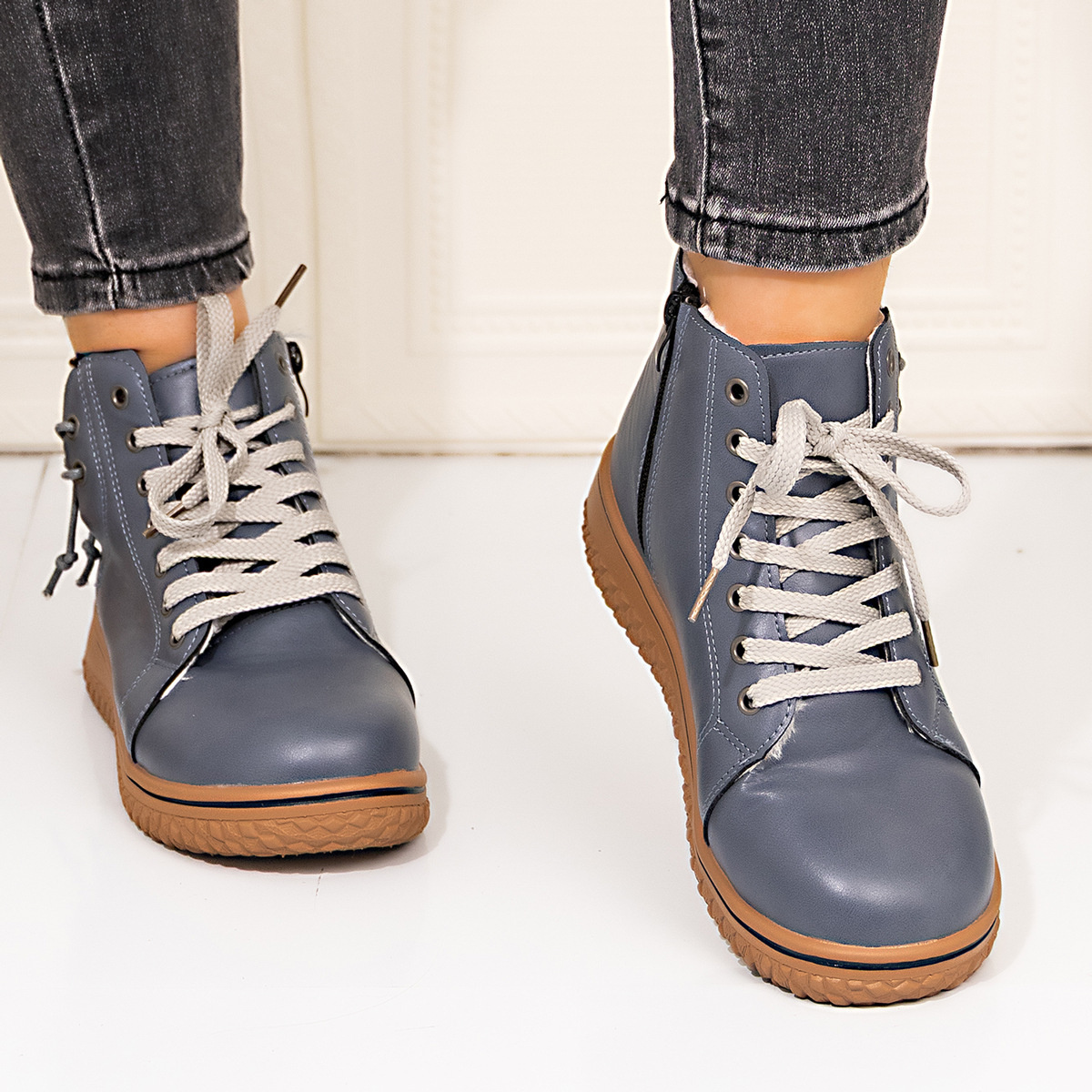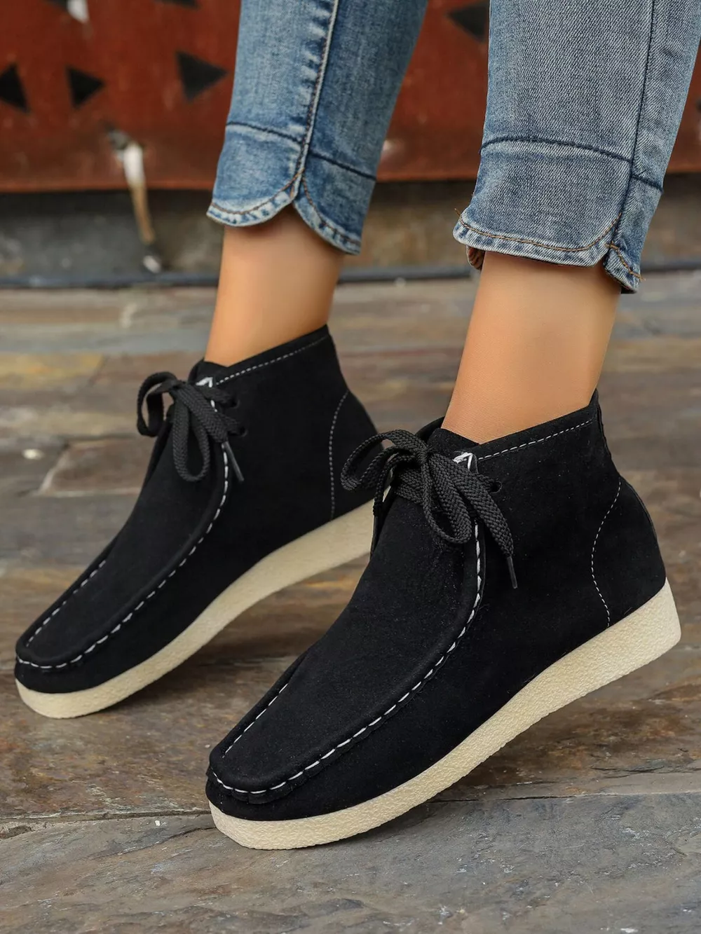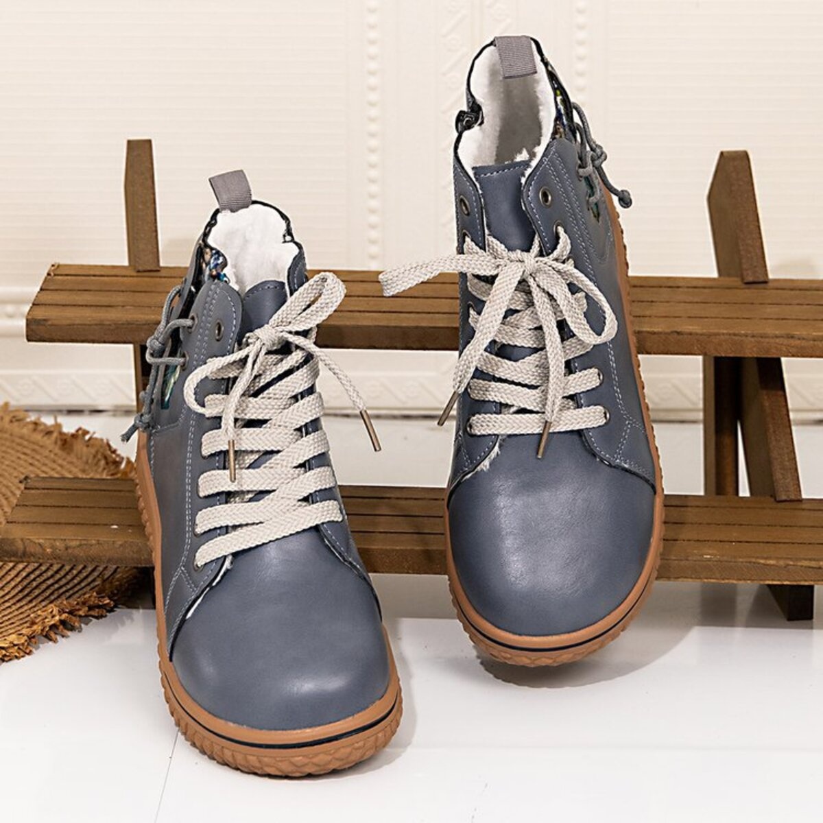 Lace Up Round Toe Platform Ankle Boots