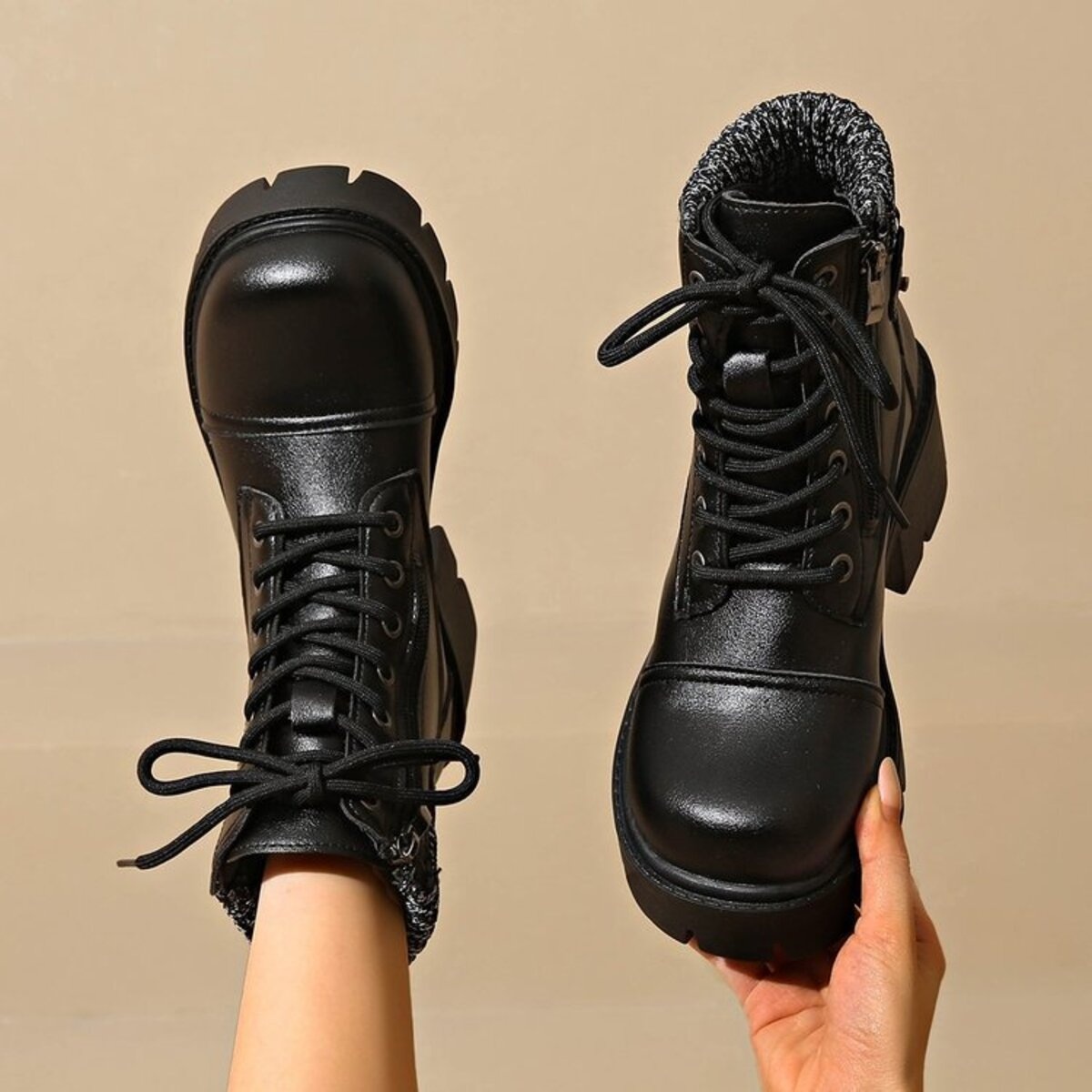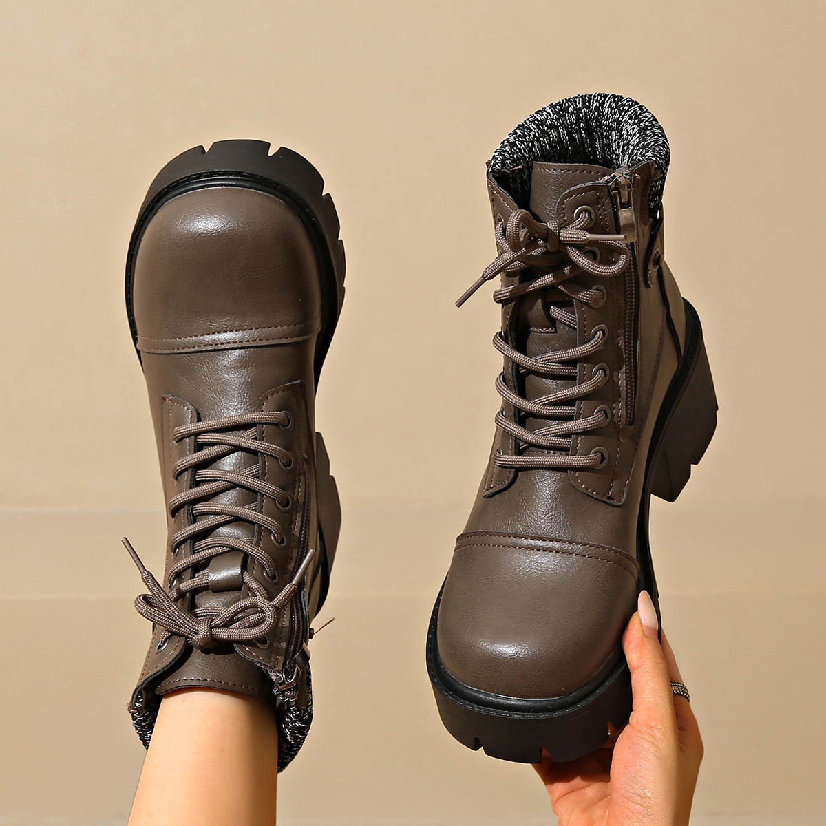 Round Toe Lace Up Platform Boots