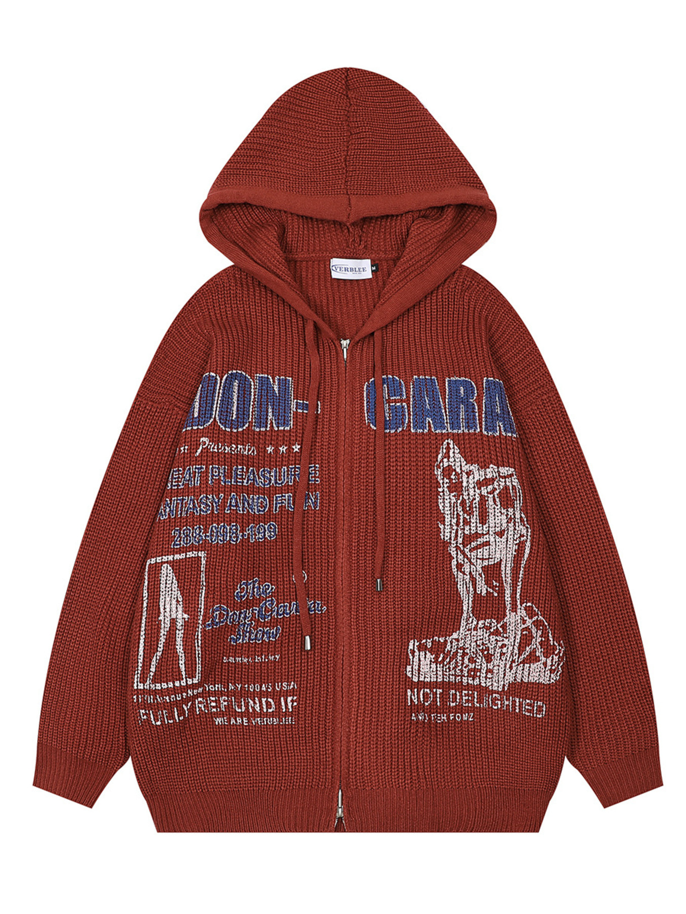 Men's Casual Hooded Zip-Up Knit Cardigan