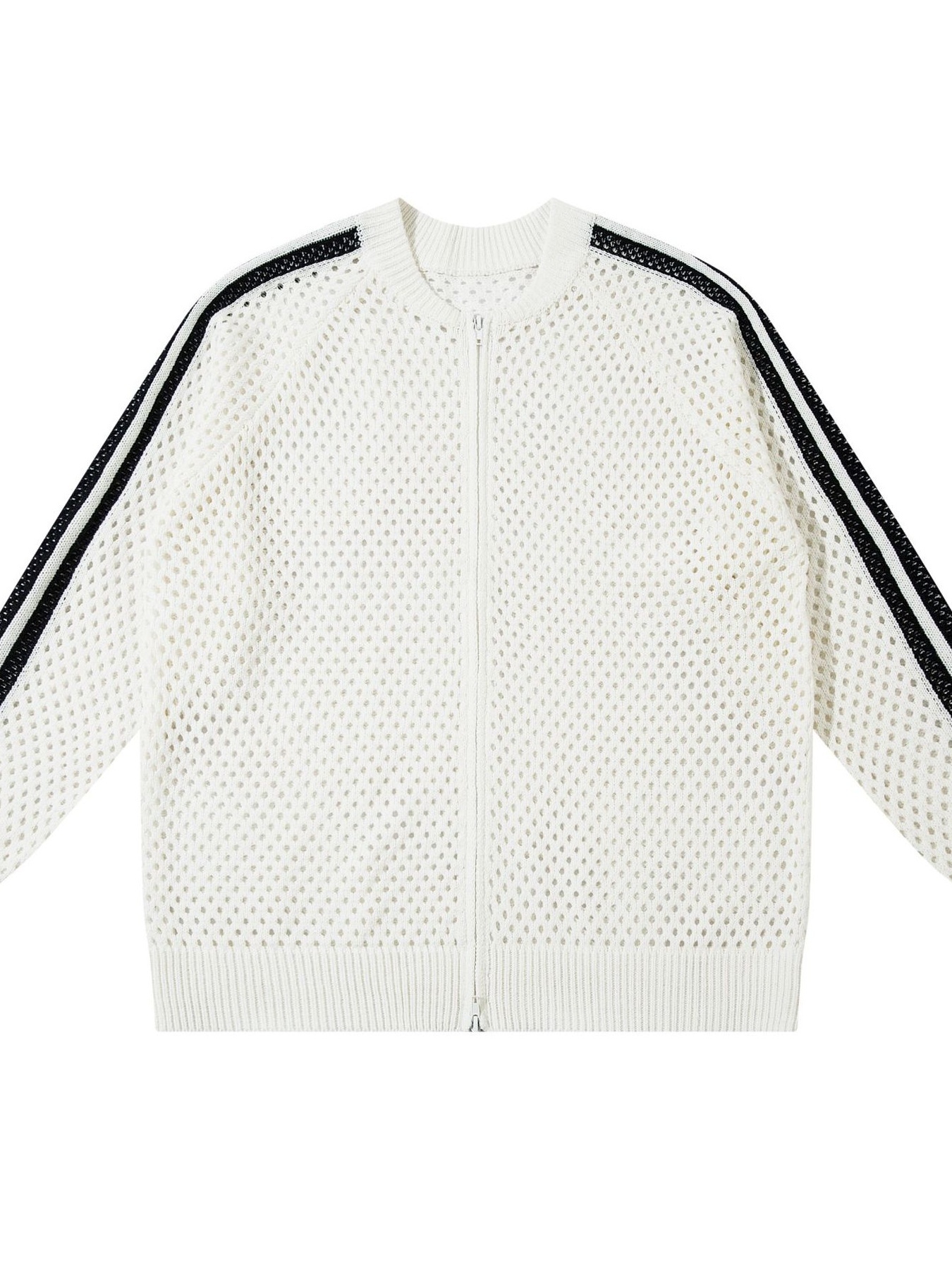 Men's Mesh Knit Zip-Up Cardigan with Stripe Detail