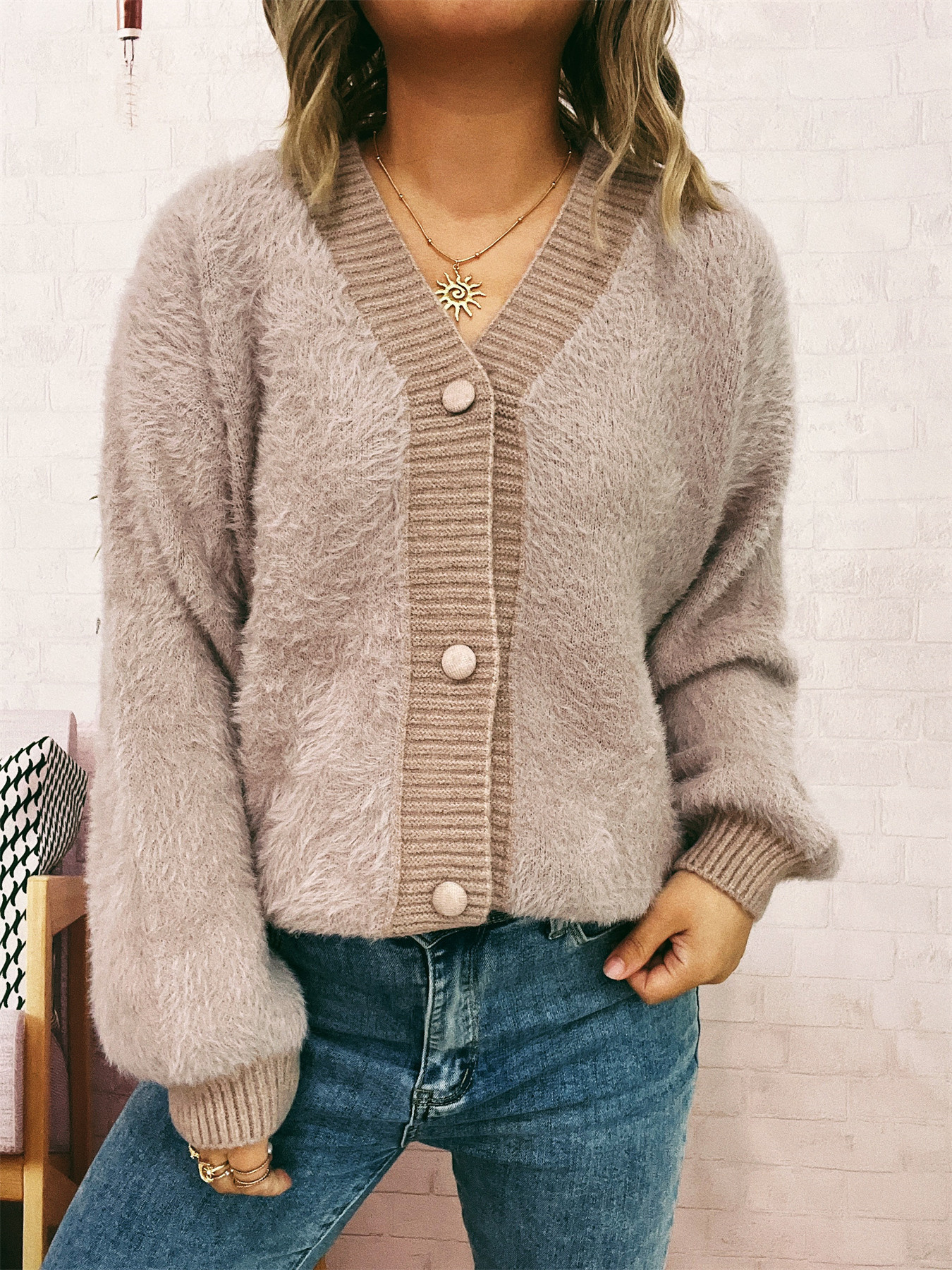 Fuzzy Button-Up Long Sleeve Cardigan