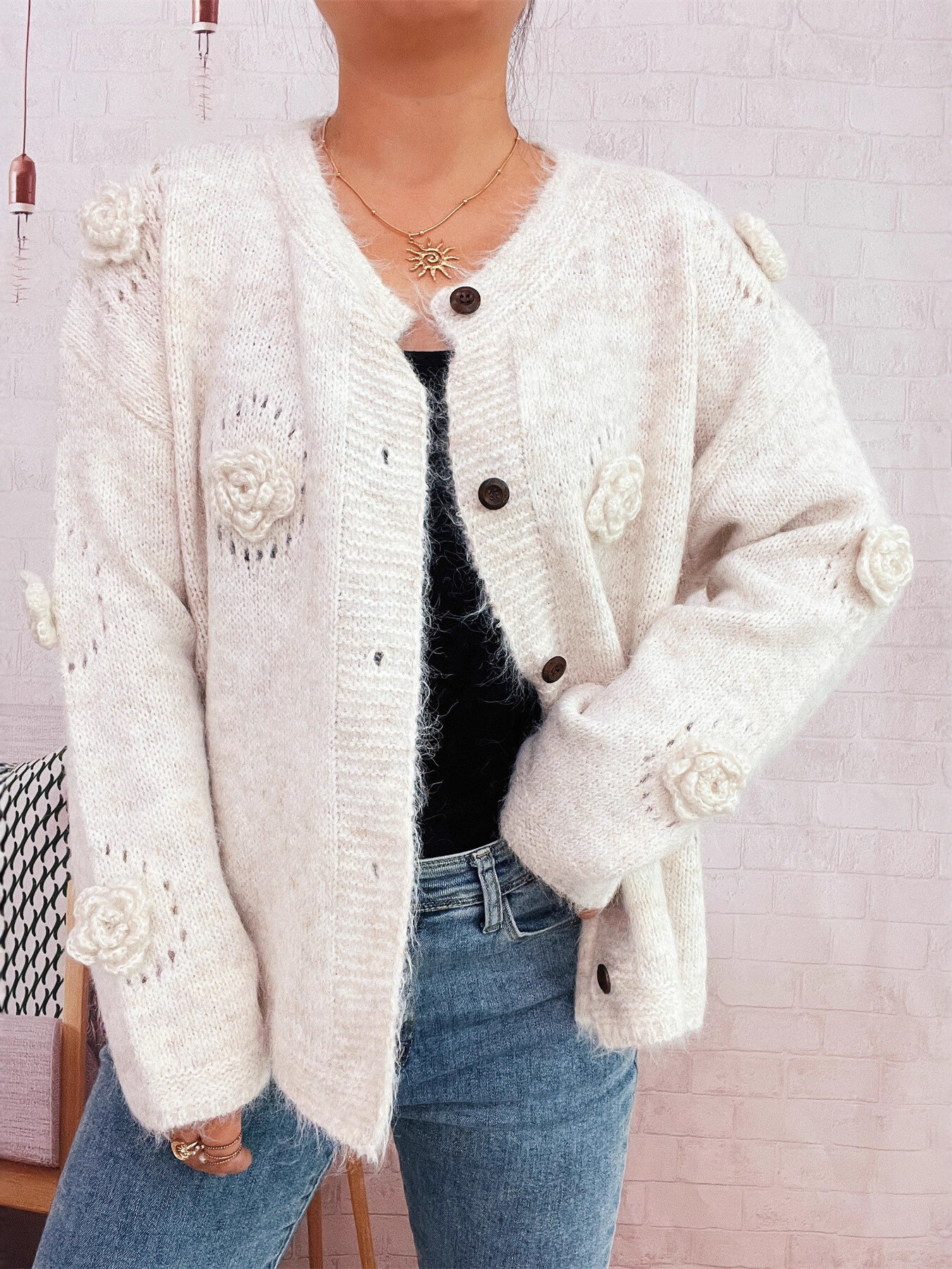 Flower Button Long Sleeve Cardigan