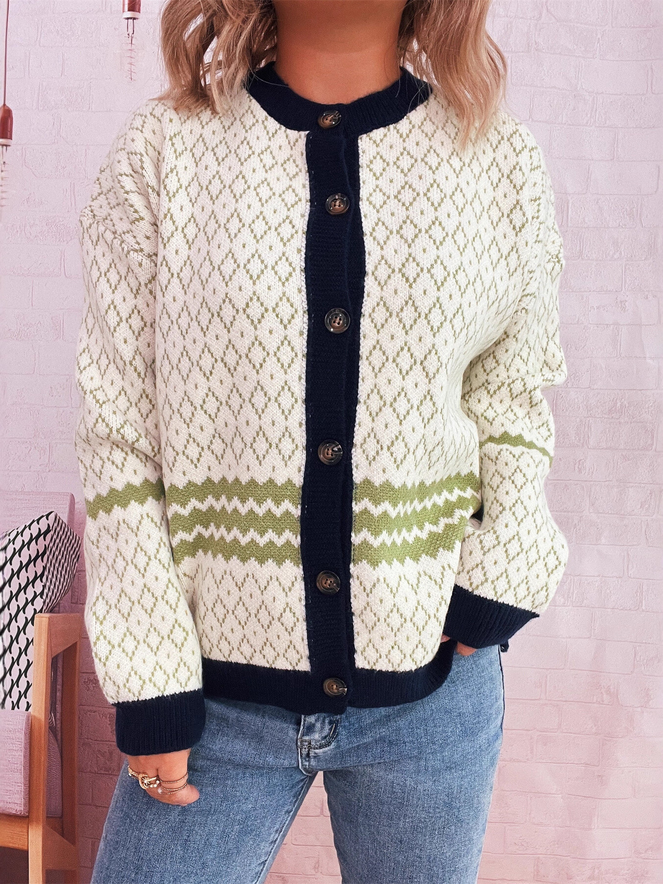 Geometric Pattern Button Up Cardigan