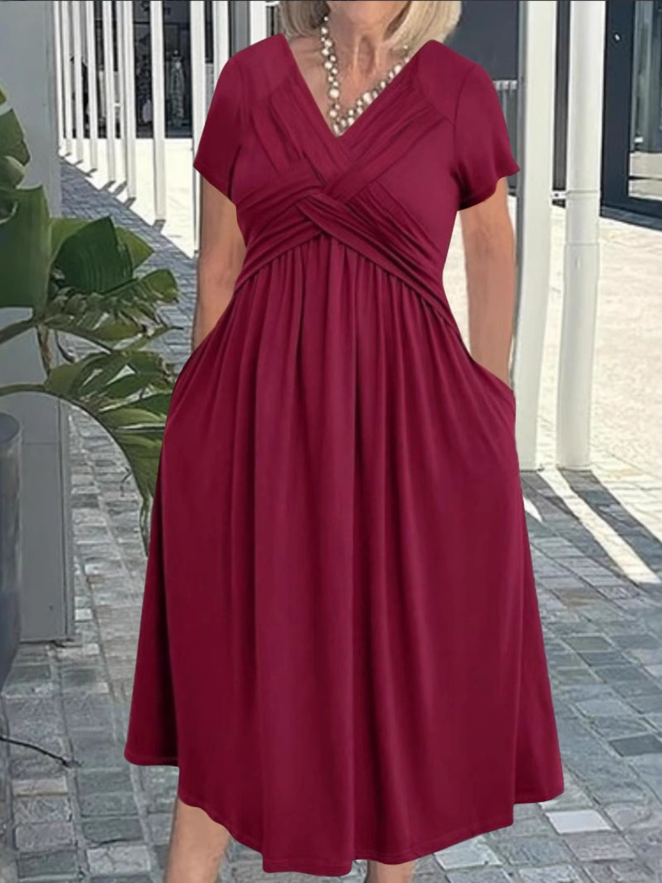 V-Neck Short Sleeve Midi Dress