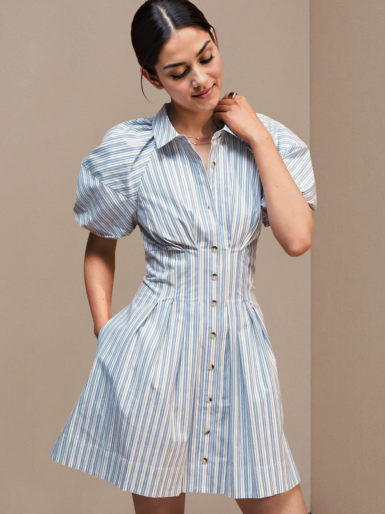 Striped Button Front Shirt Dress