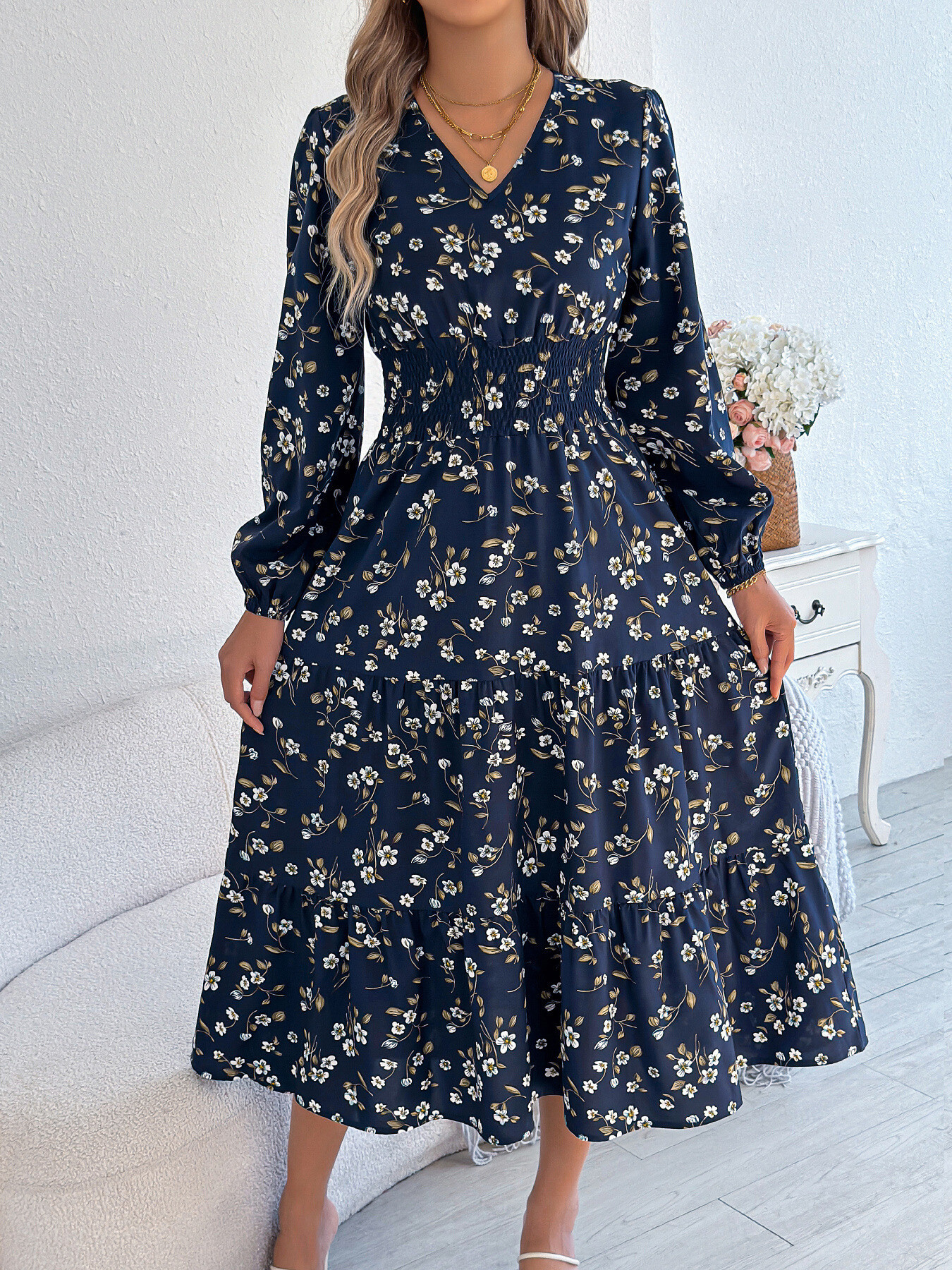 Ruffled Floral V-Neck Flounce Sleeve Dress