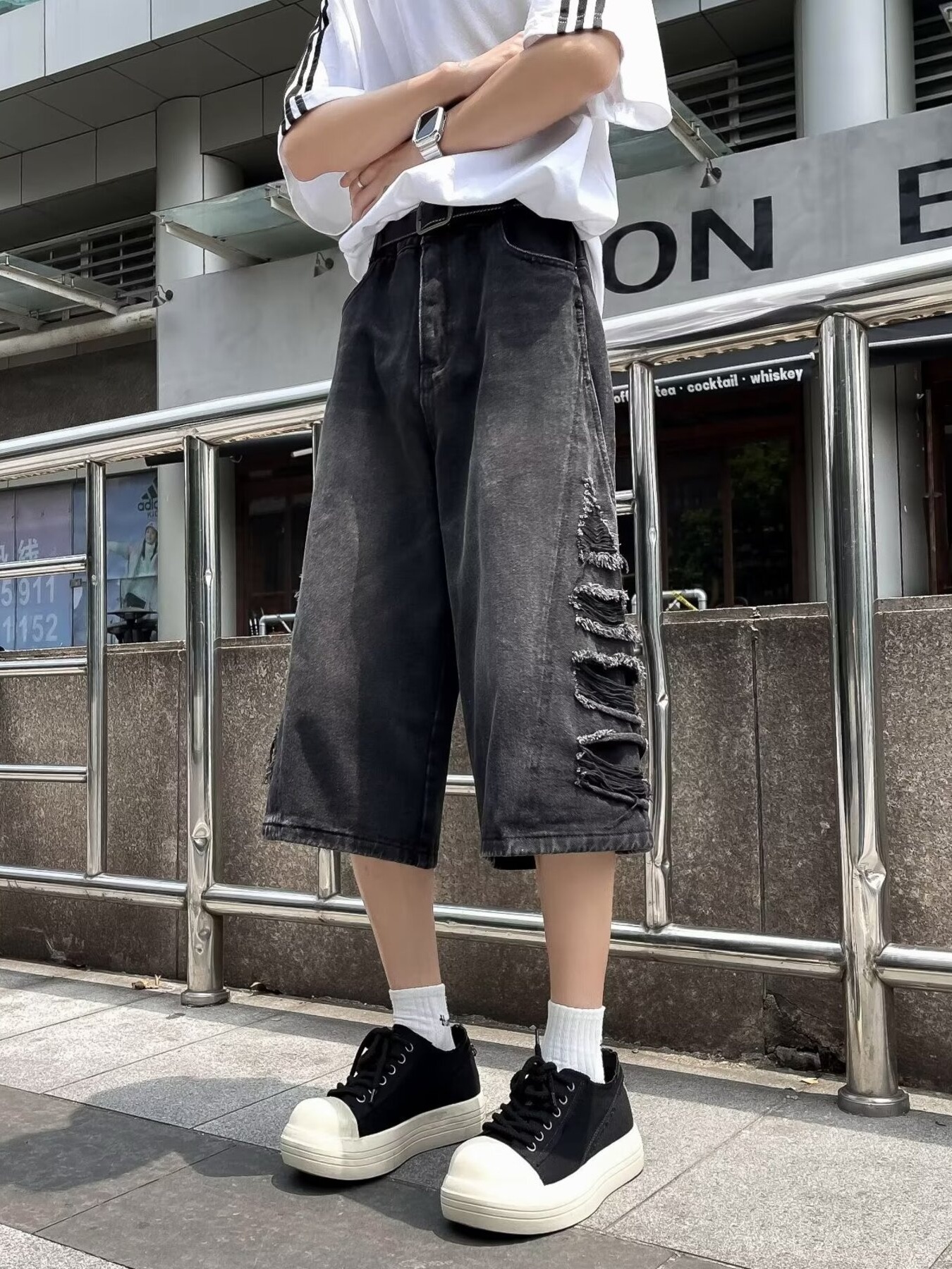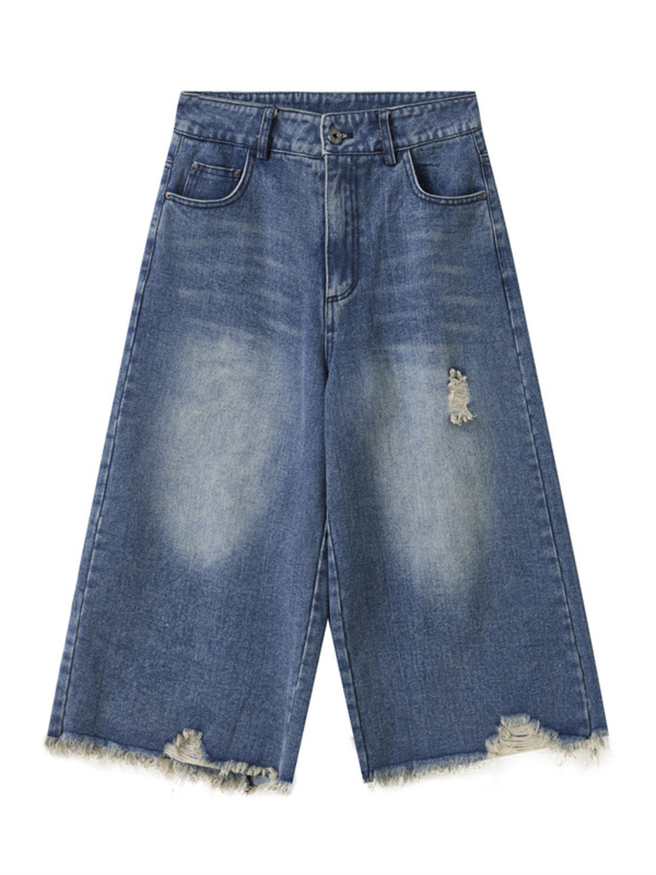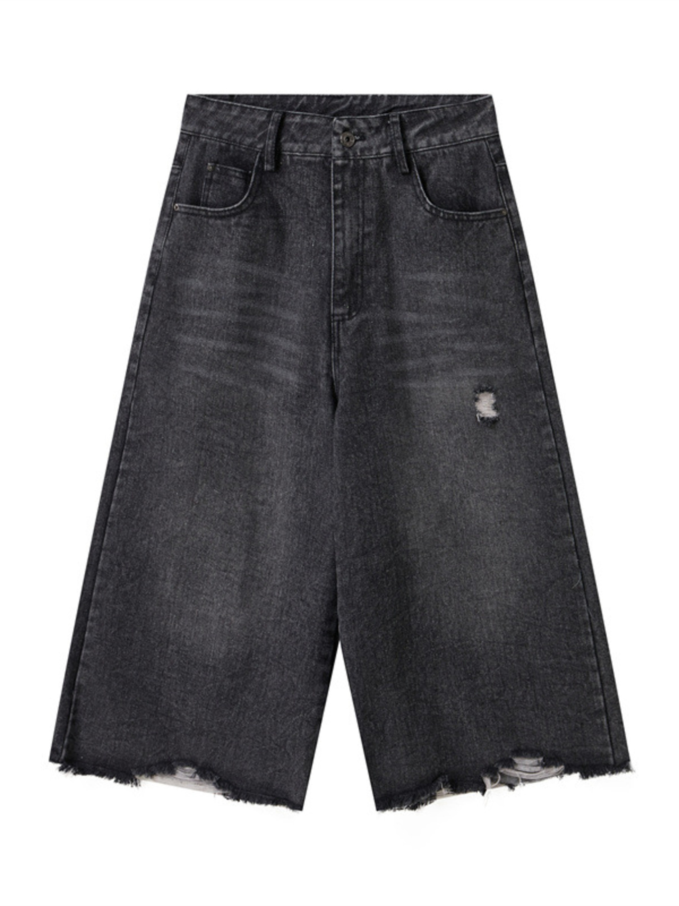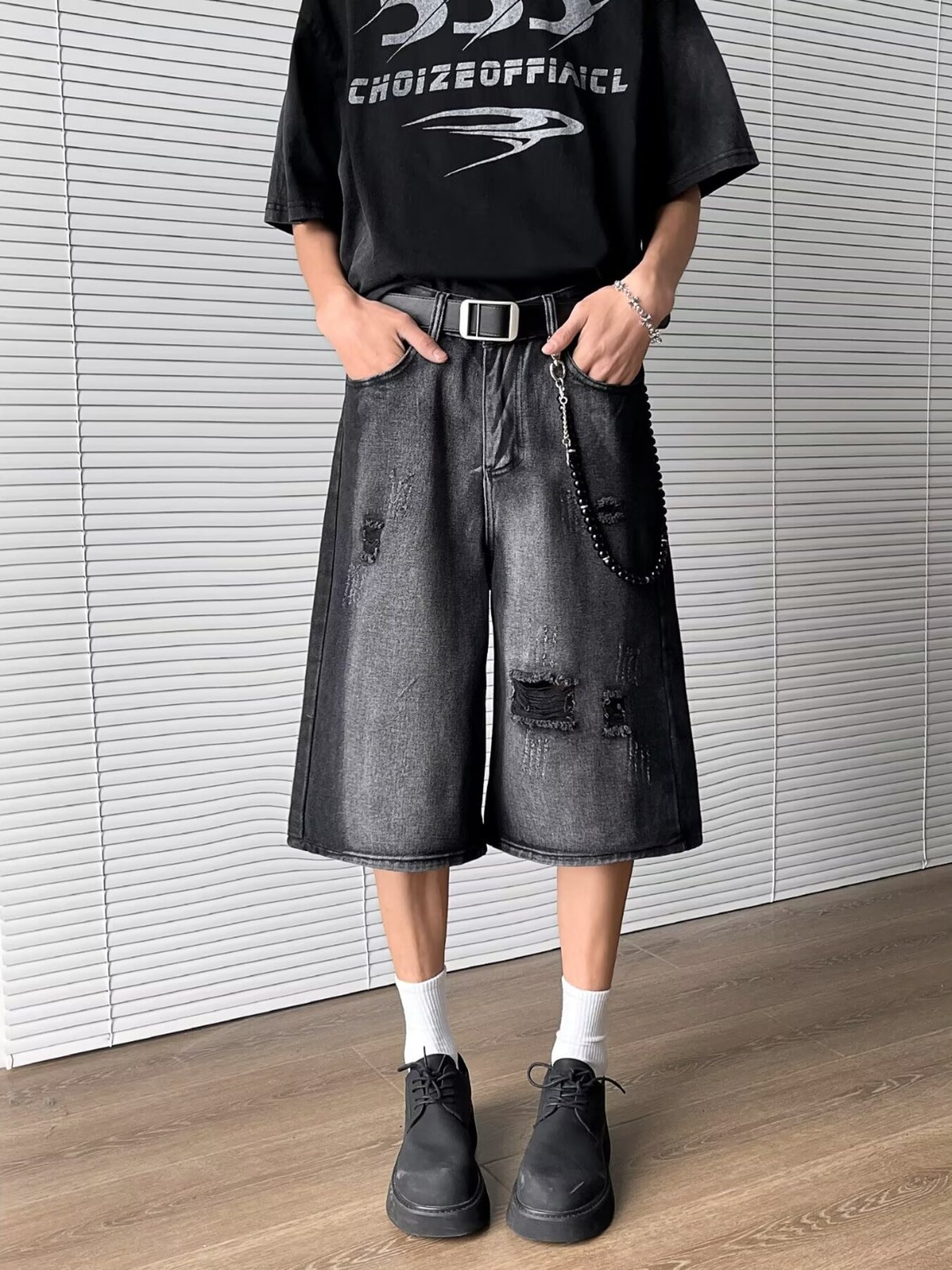 Men's Full Size Distressed Wide Leg Denim Shorts Plus Size