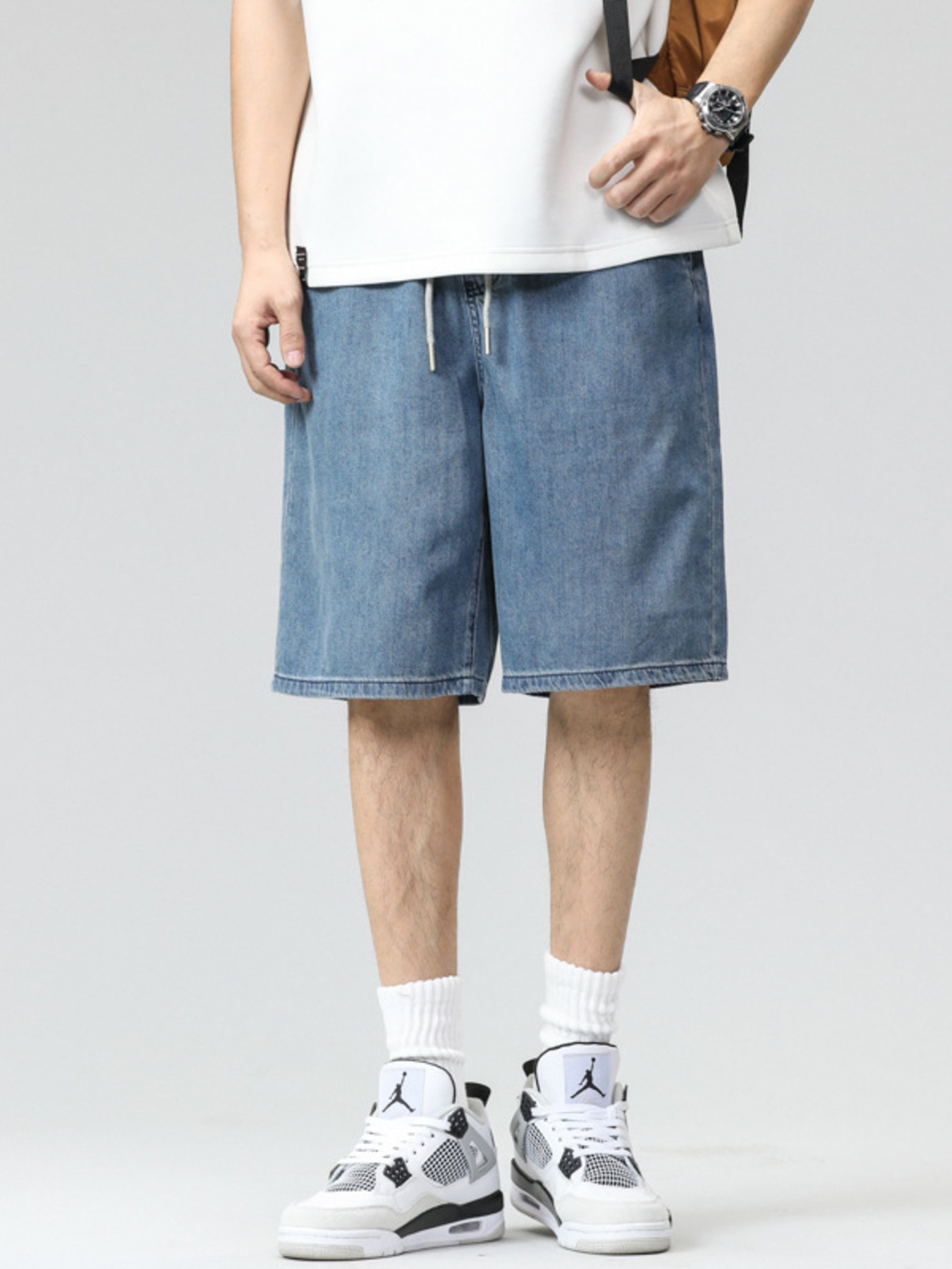 Men's Full Size Drawstring Denim Shorts with Pockets Plus Size
