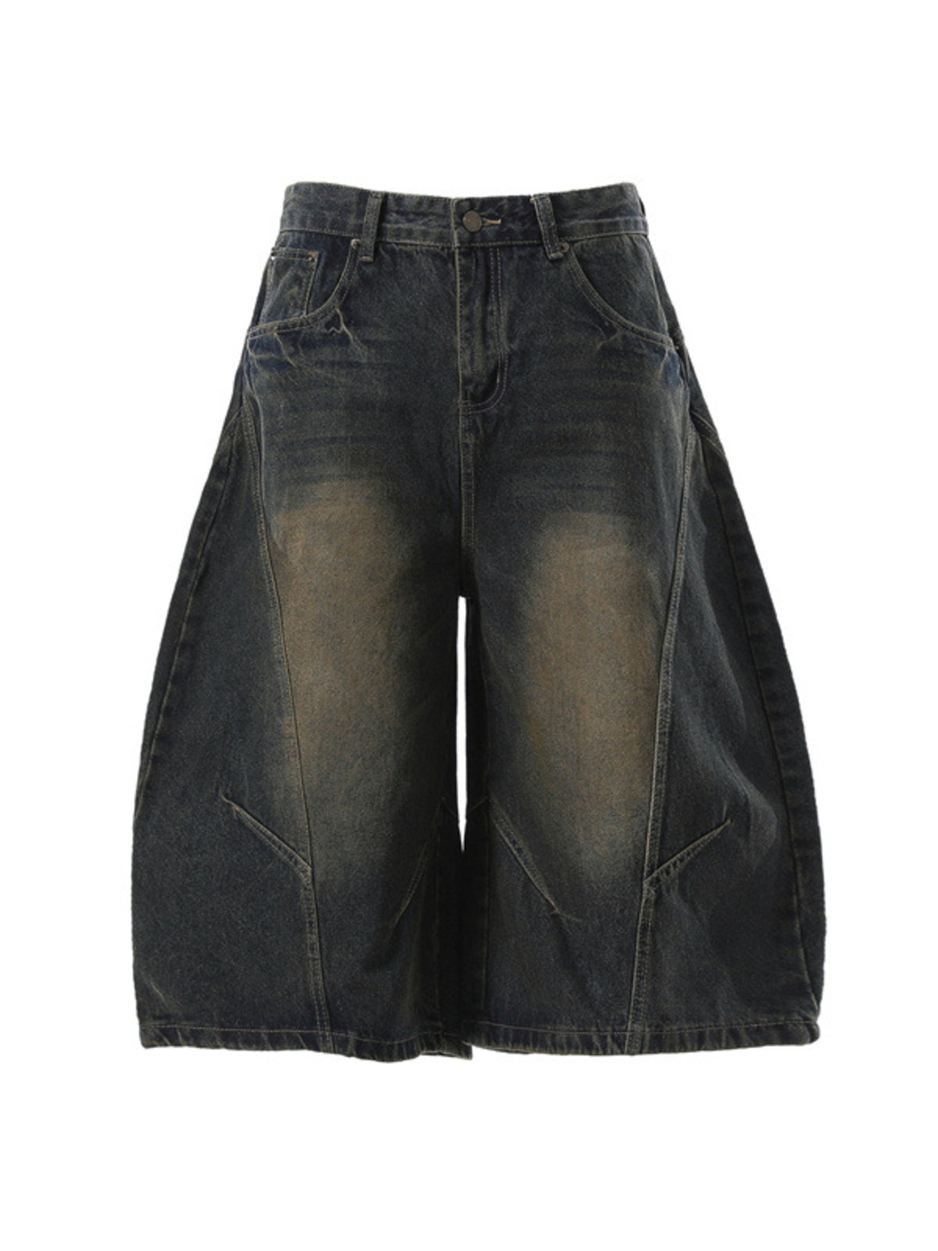 Full Size Vintage Washed Denim Shorts with Pockets Plus Size