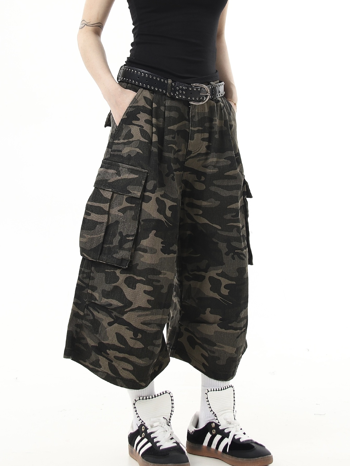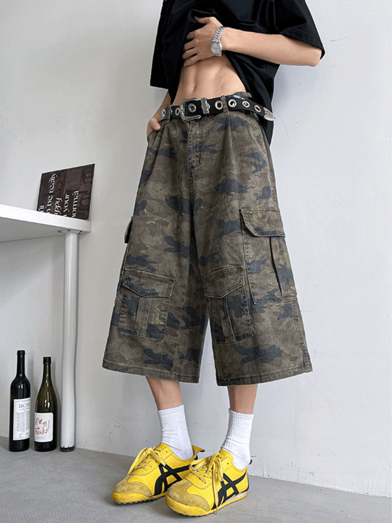 Men's Full Size Camouflage Wide Leg Denim Shorts Plus Size