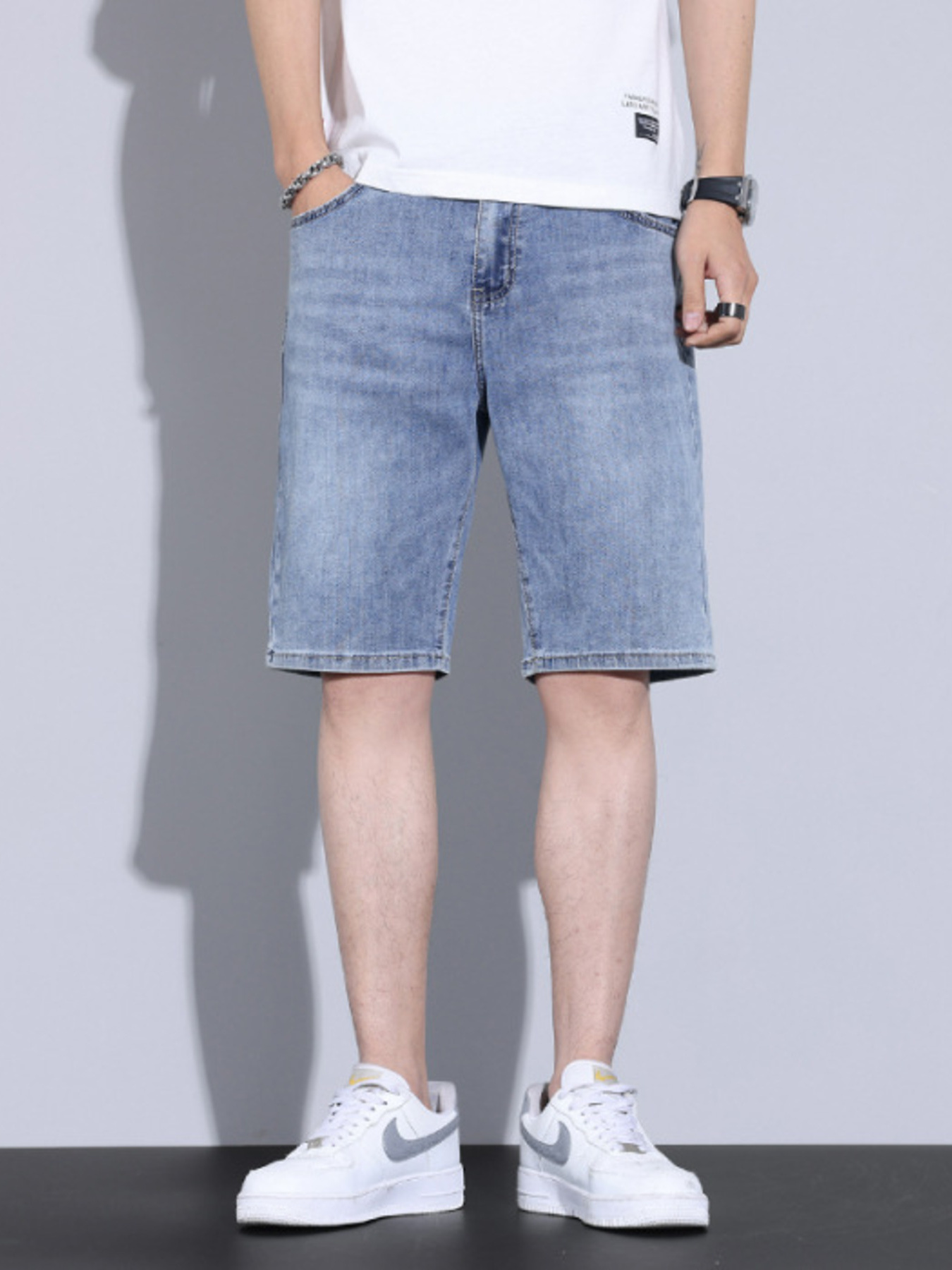 Men's Plus Size Relaxed Fit Wash Denim Shorts