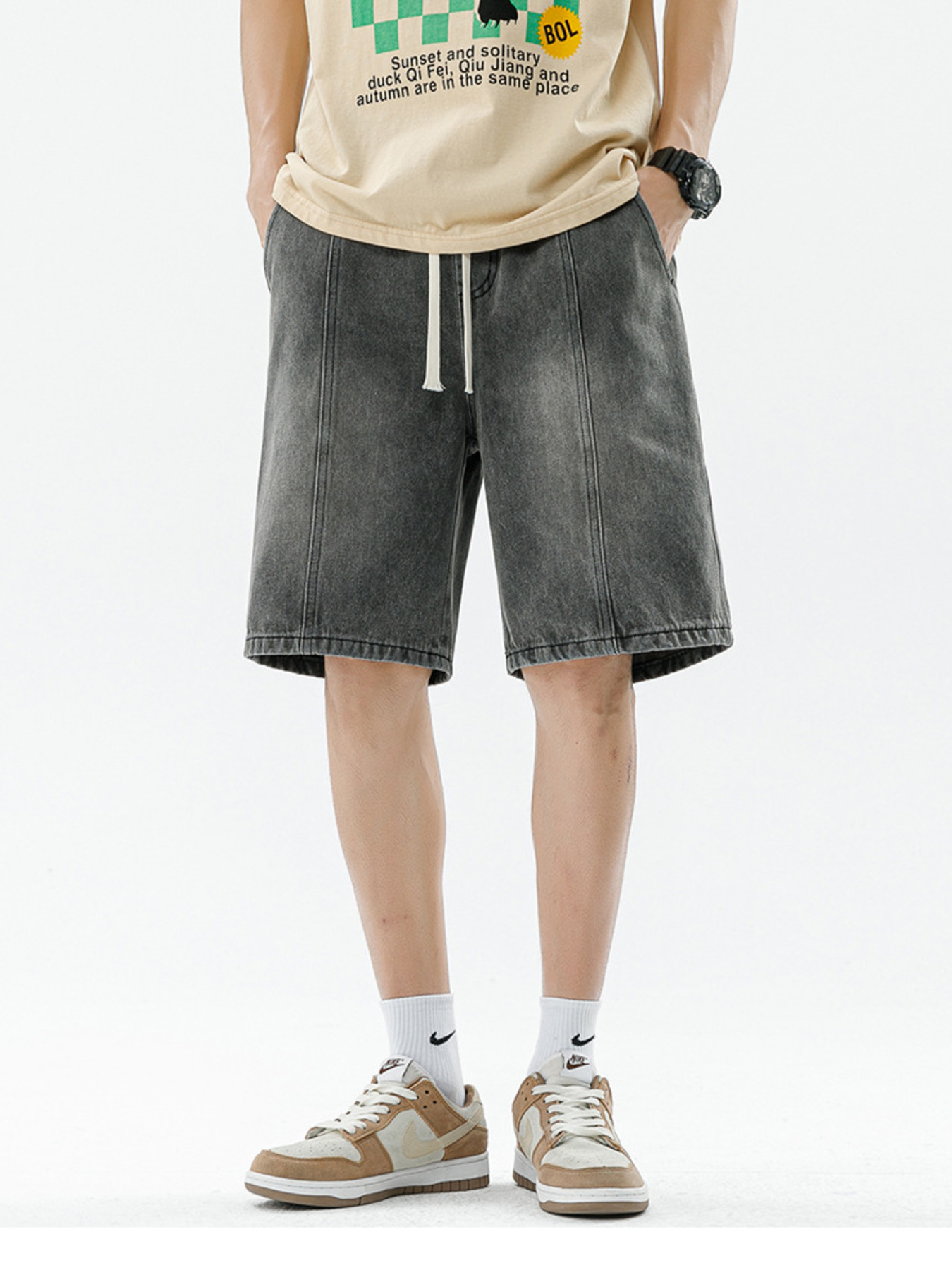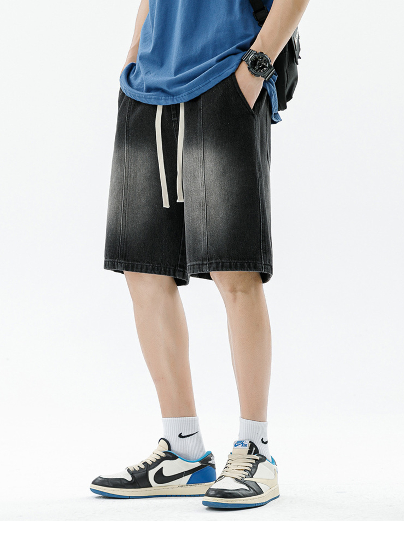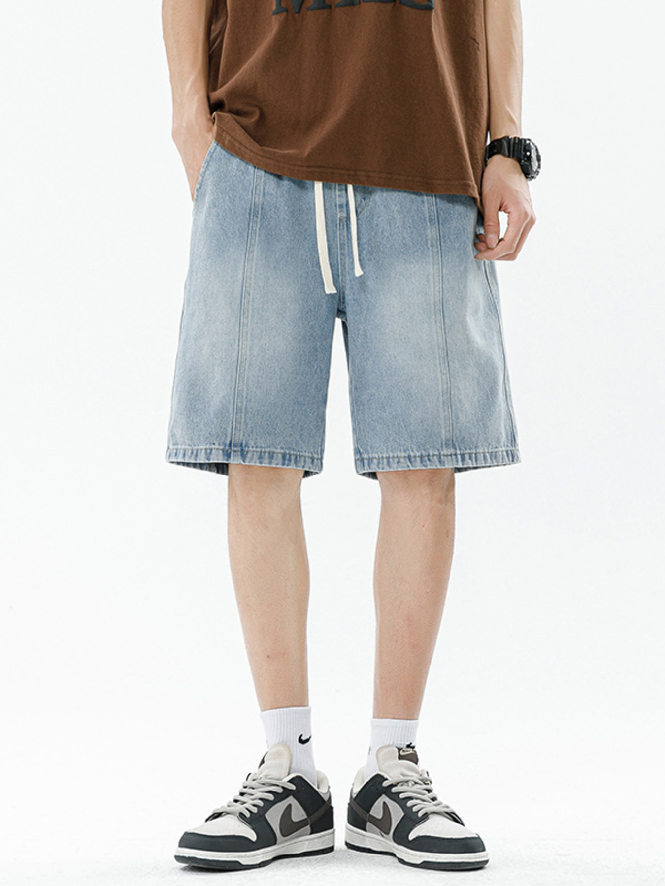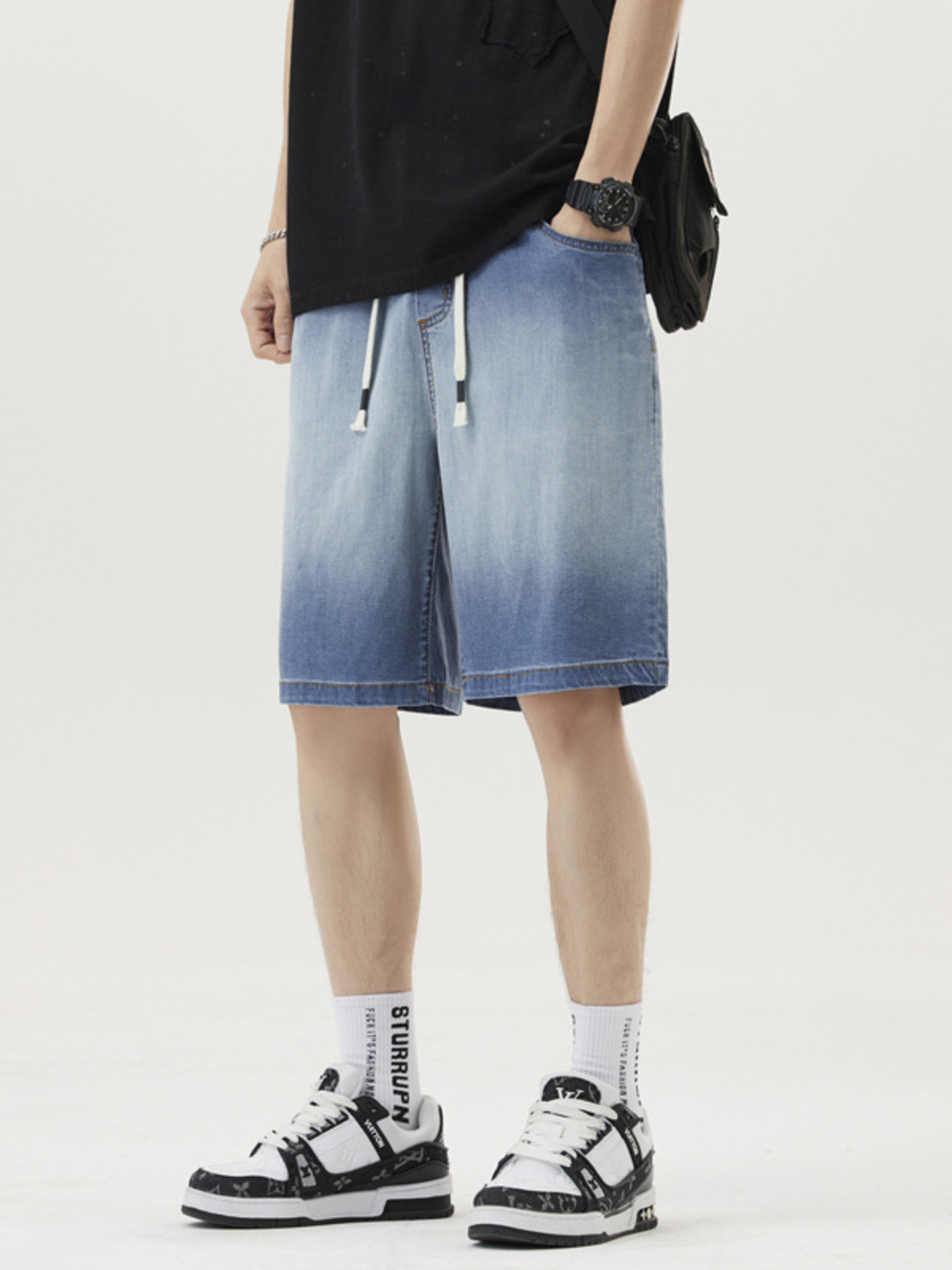 Men's Loose Fit Drawstring Denim Shorts