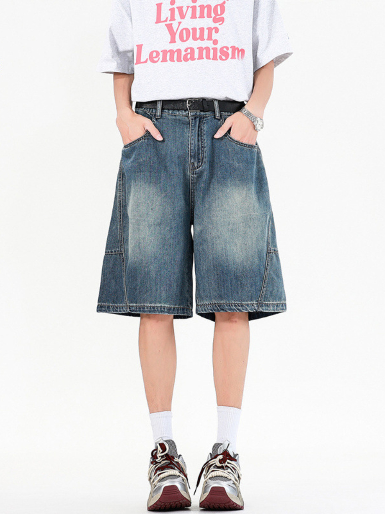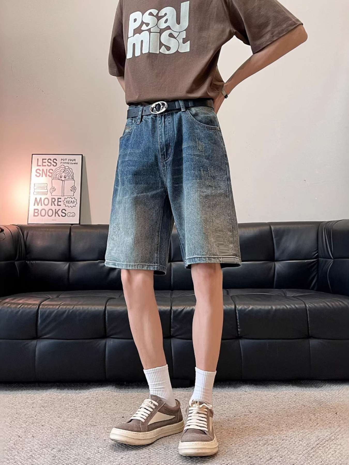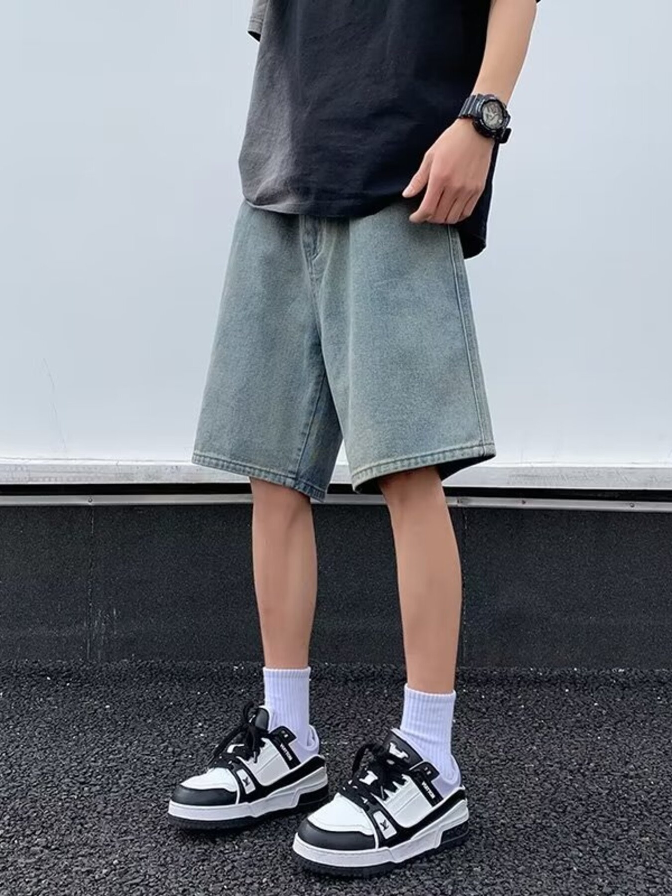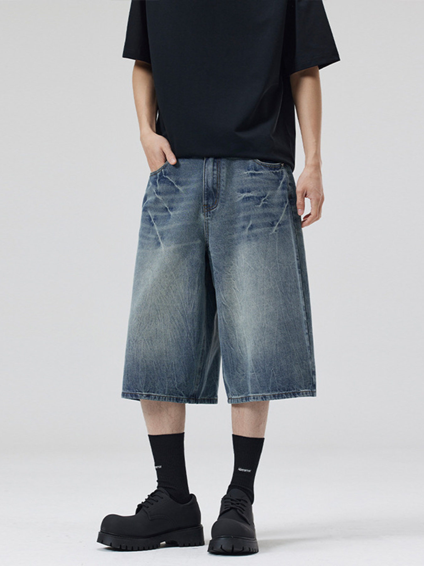 Men's Washed Loose Fit Denim Shorts