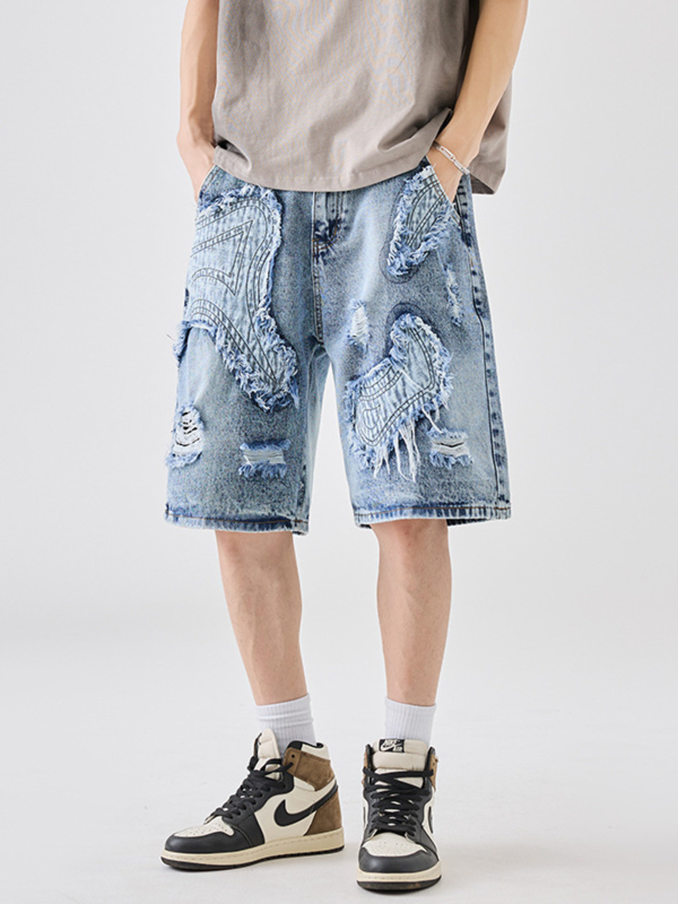 Men's Distressed Loose Fit Denim Shorts