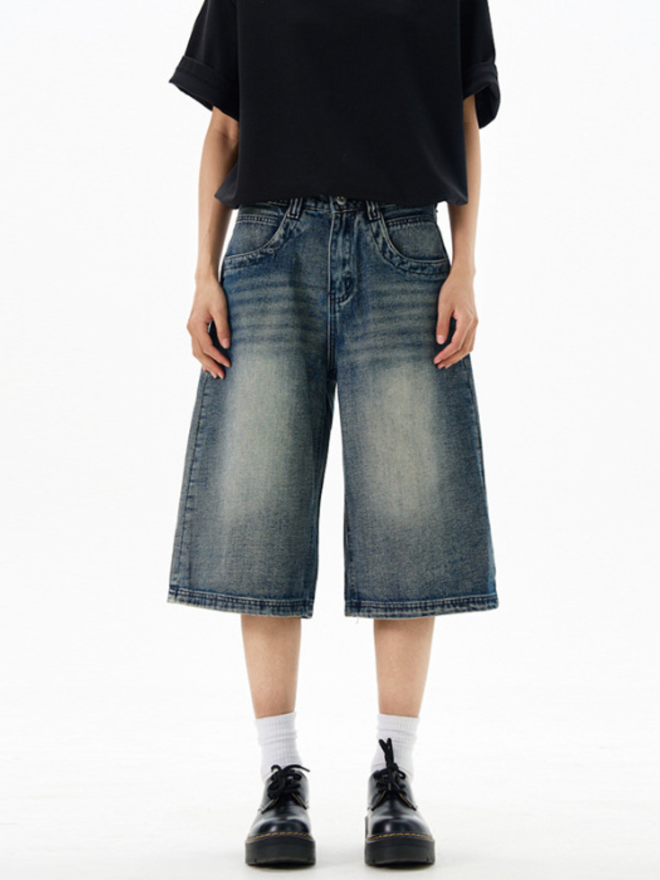 Men's Wash Wide-Leg Denim Shorts