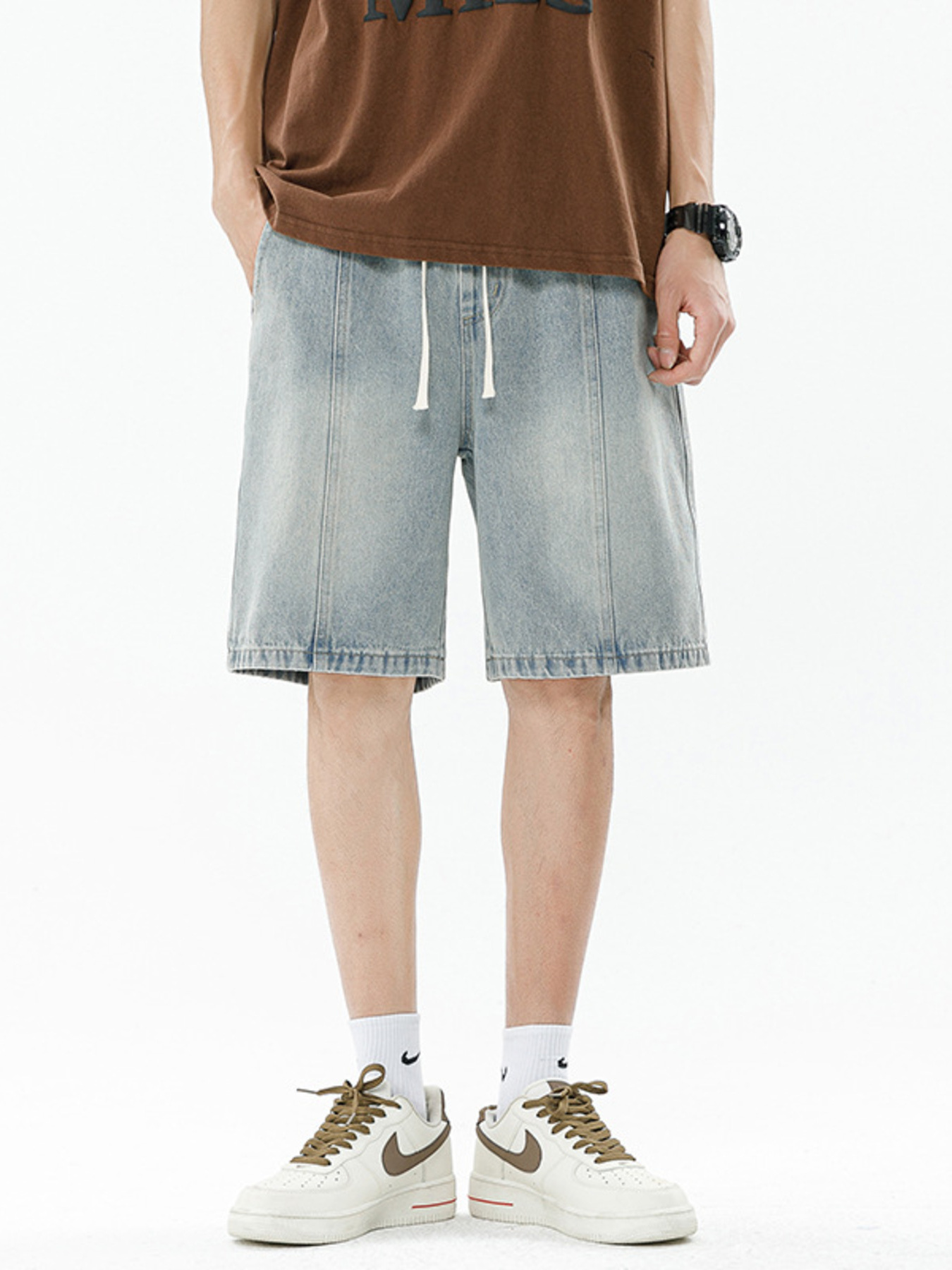 Men's Casual Drawstring Denim Shorts