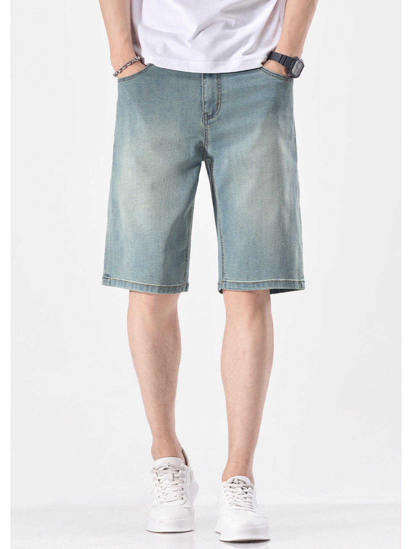 Men's Wash Denim Shorts with Pockets