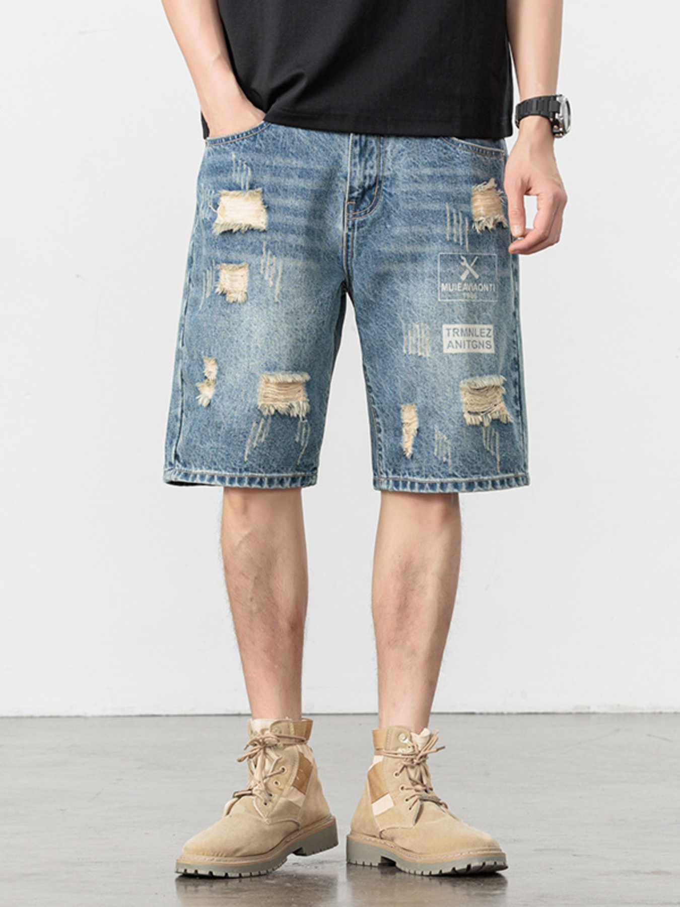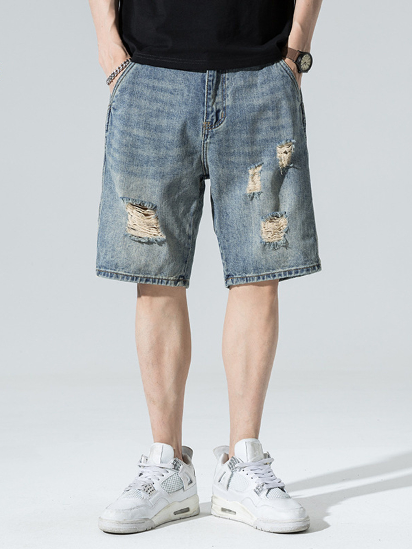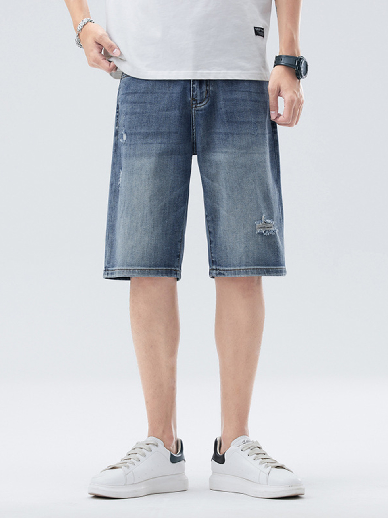 Men's Plus Size Relaxed Fit Wash Denim Shorts