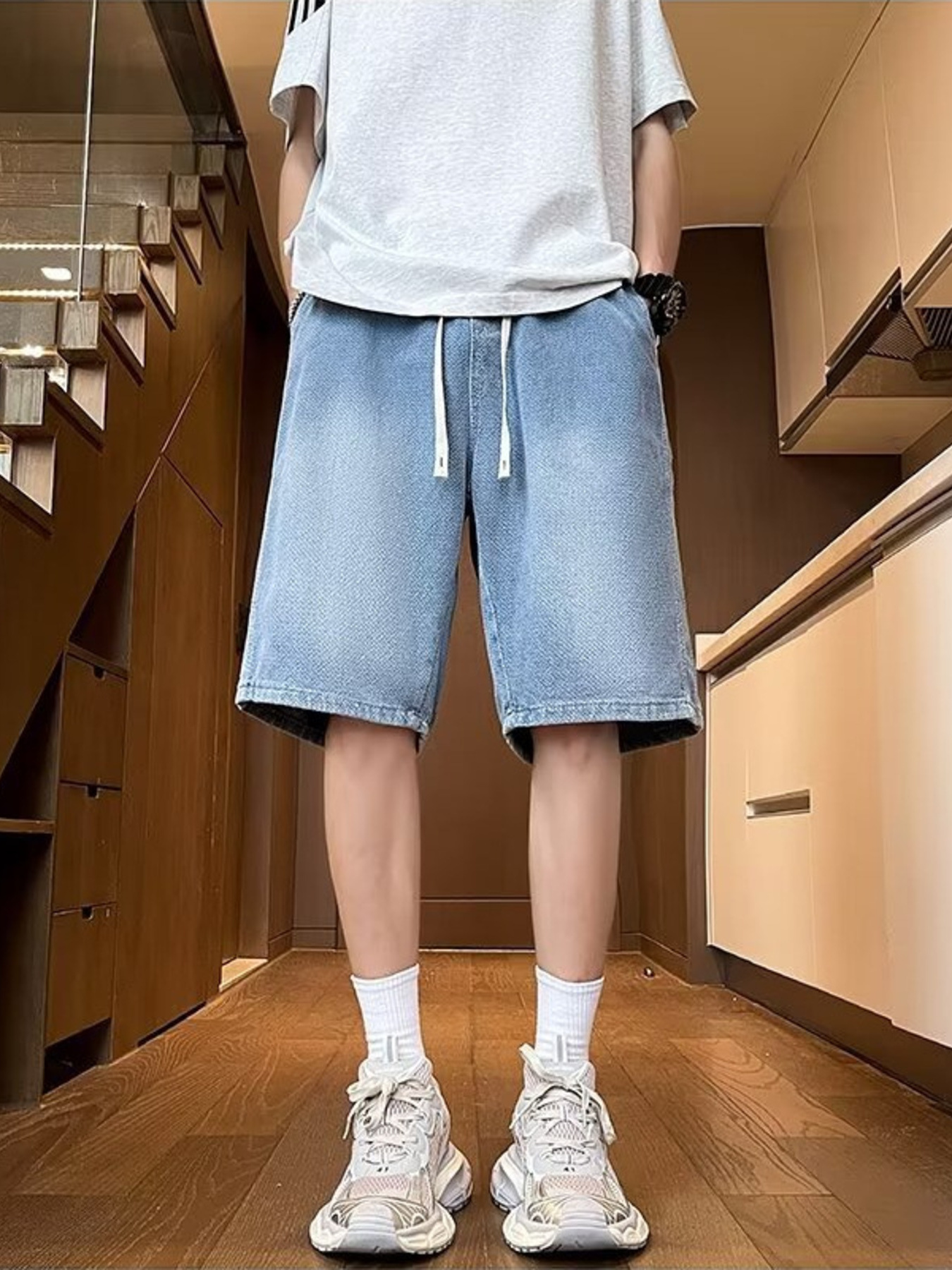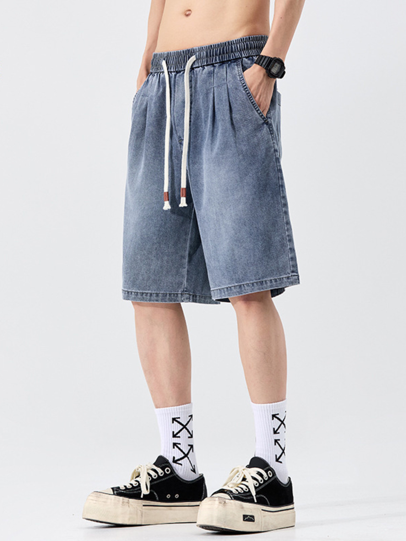 Men's Plus Size Drawstring Loose Fit Denim Shorts