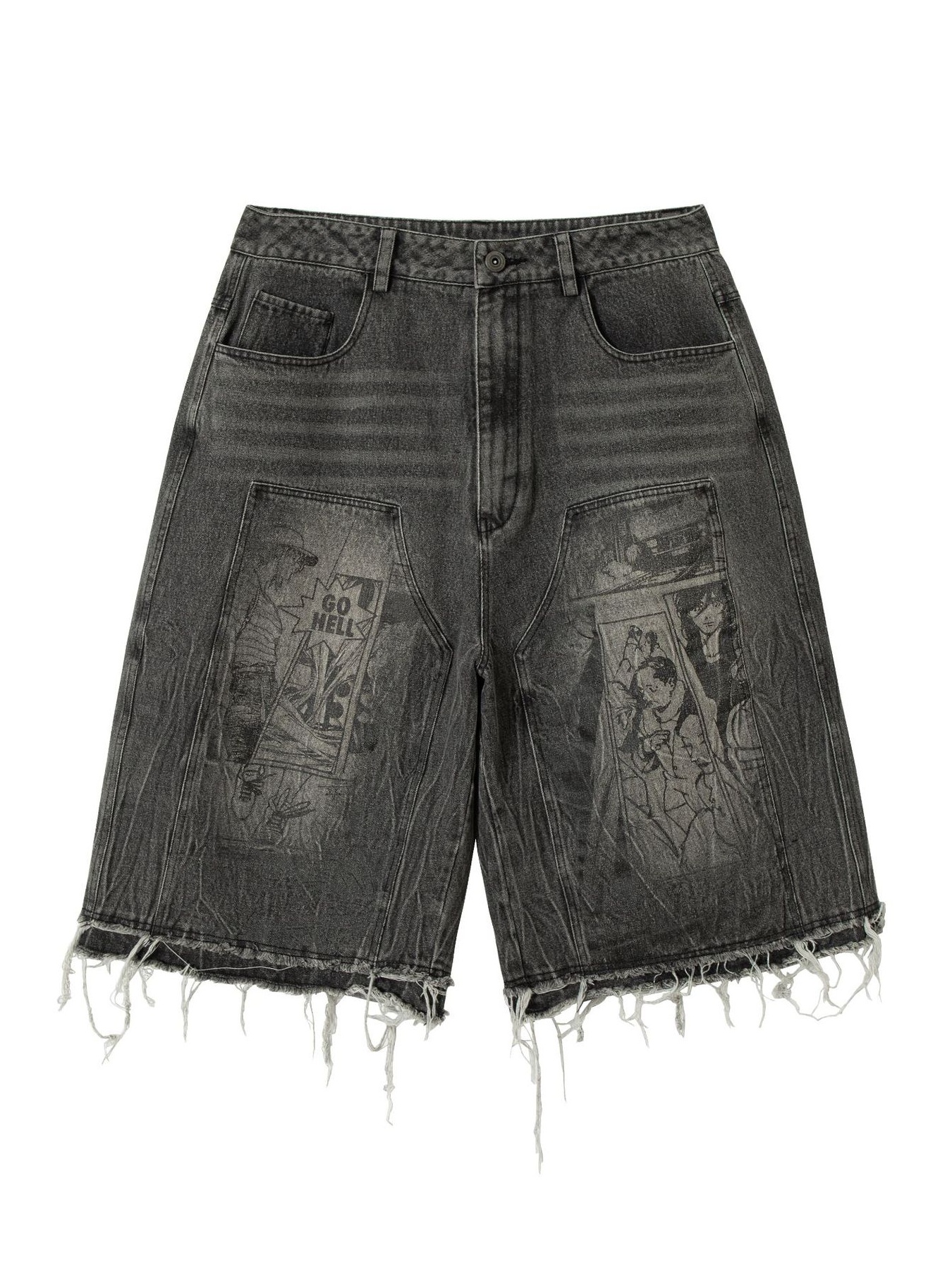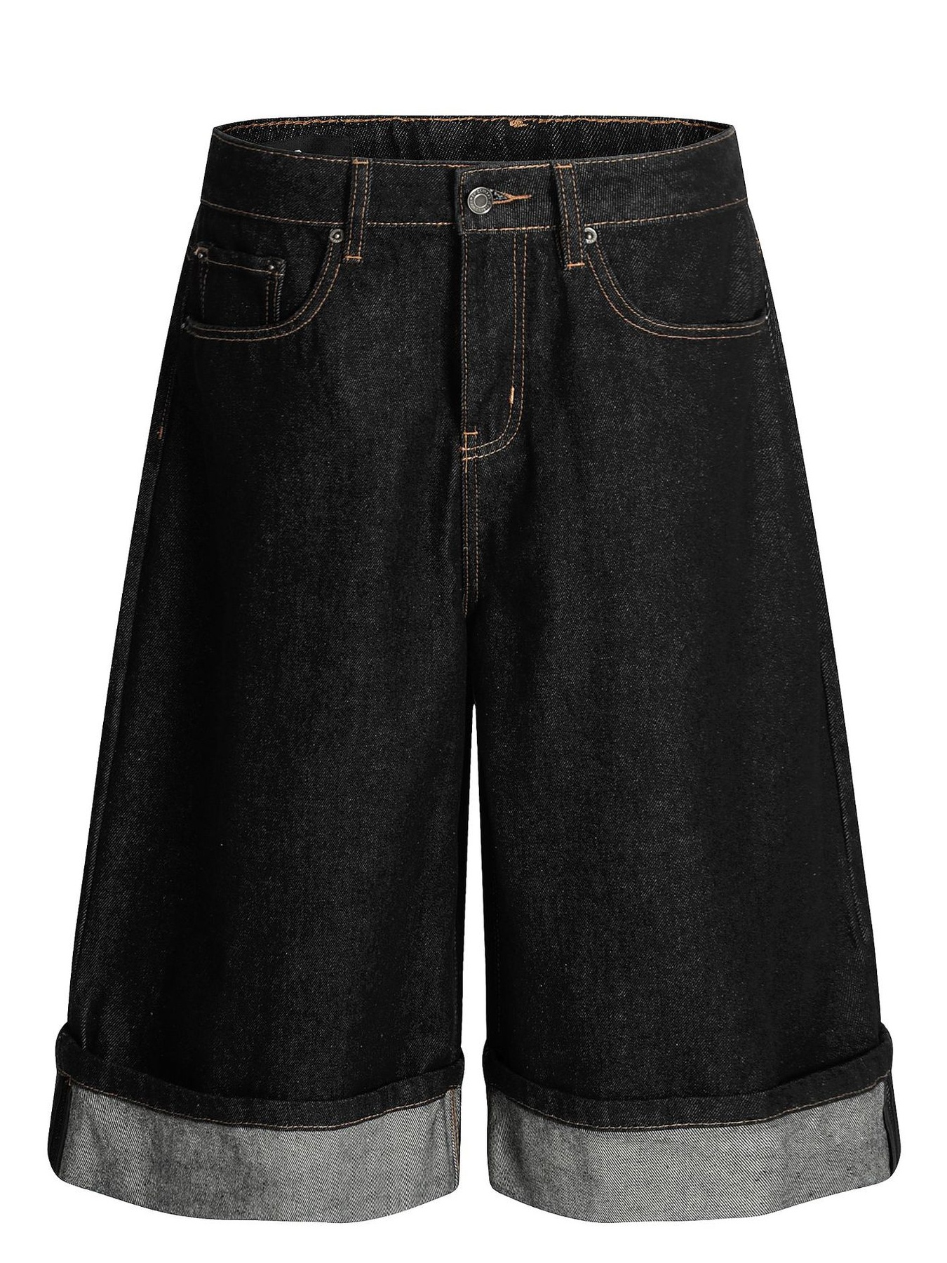 Men's Baggy Denim Shorts with Cuffed Hem