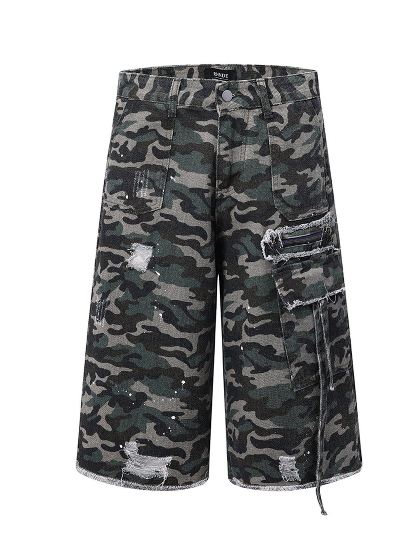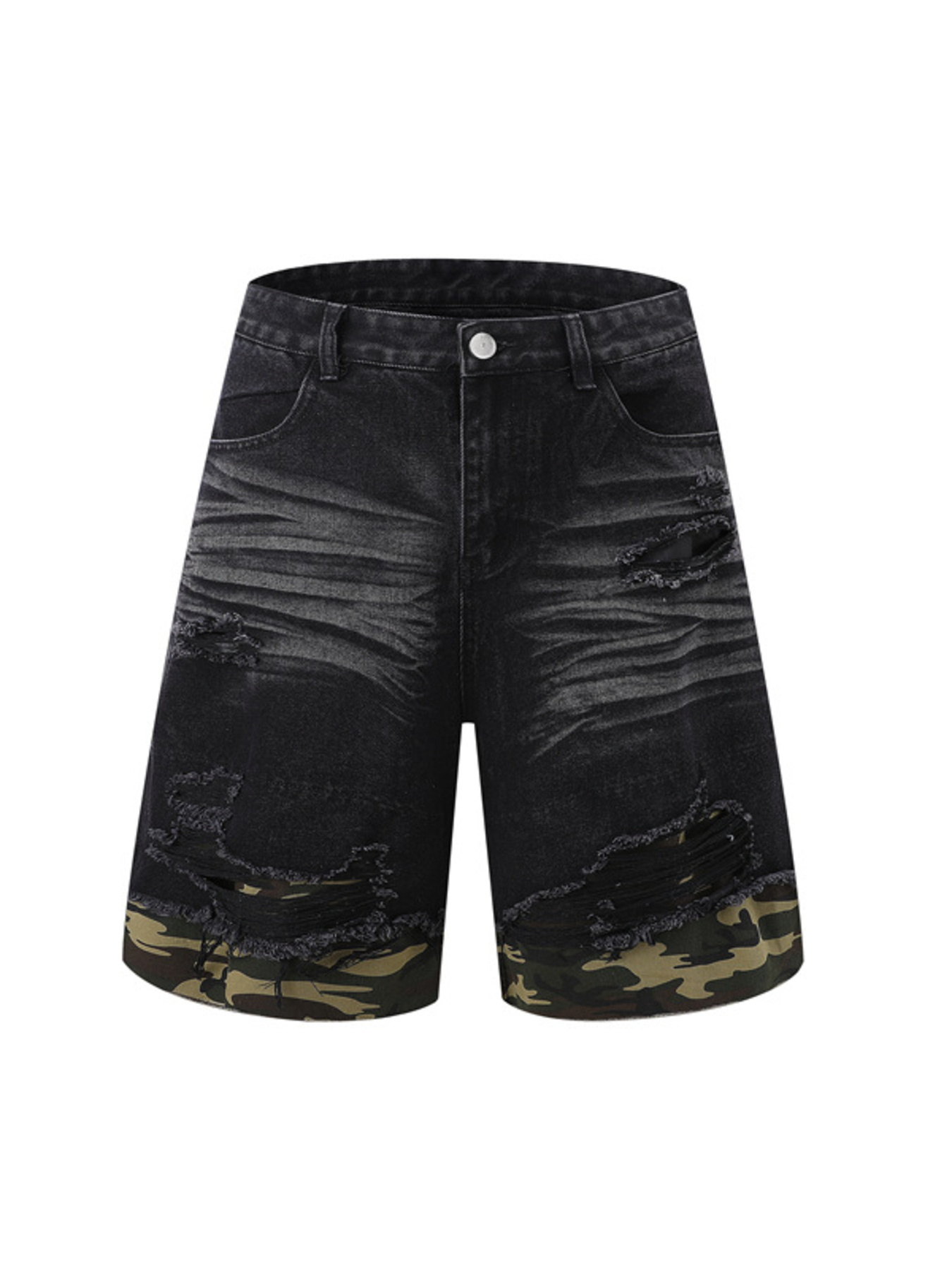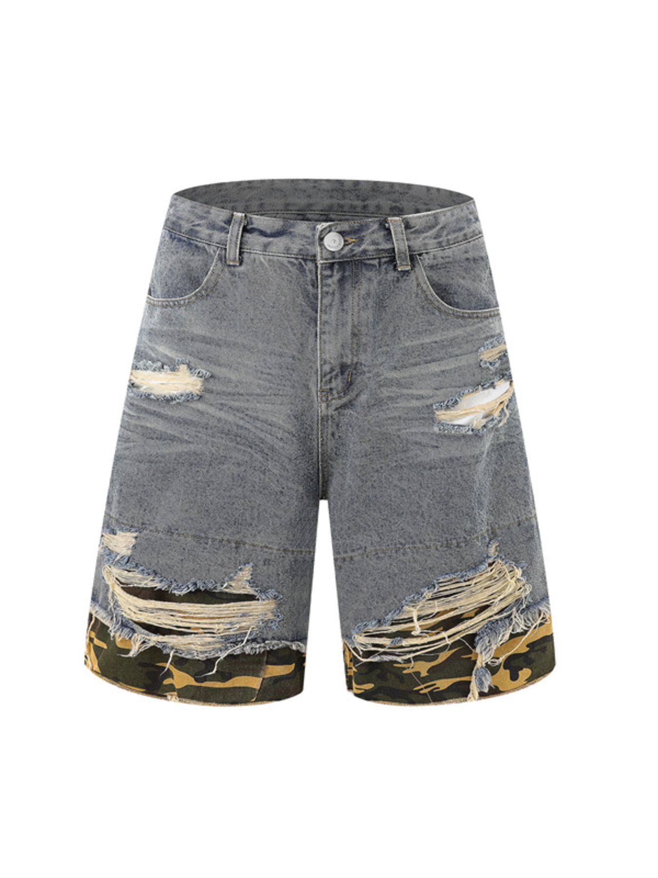 Men's Distressed Camouflage Denim Shorts