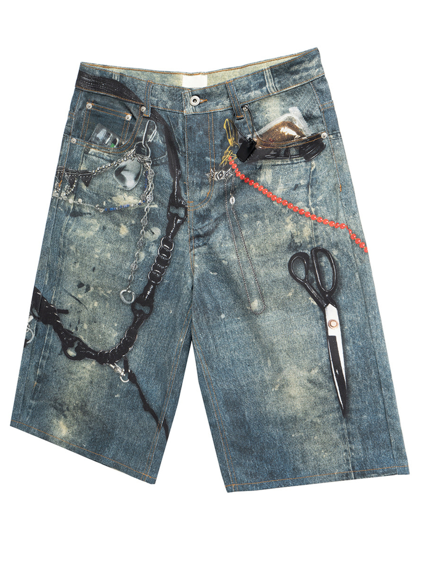 Men's Chain Print Denim Shorts