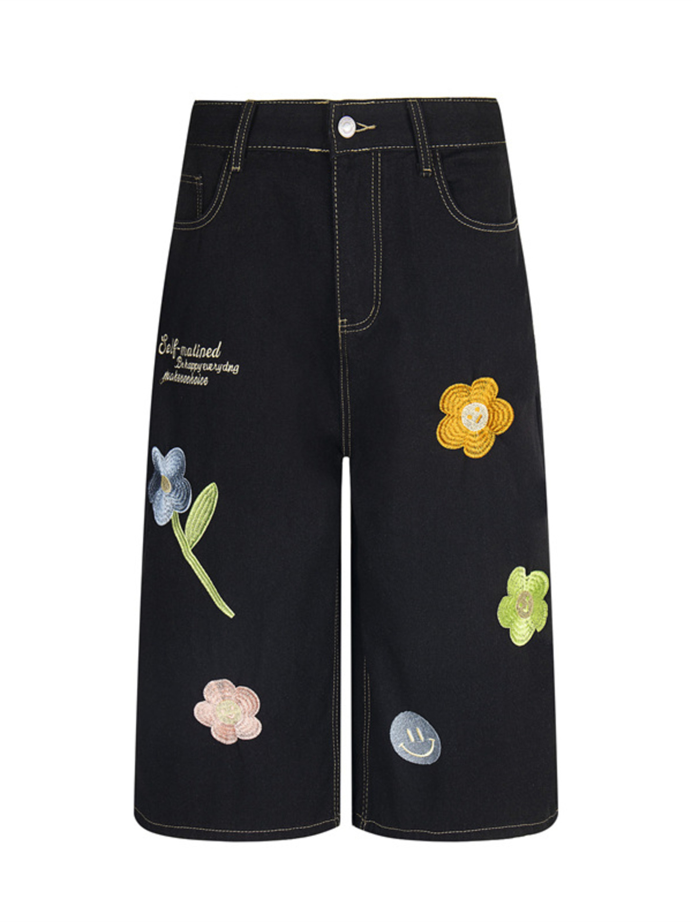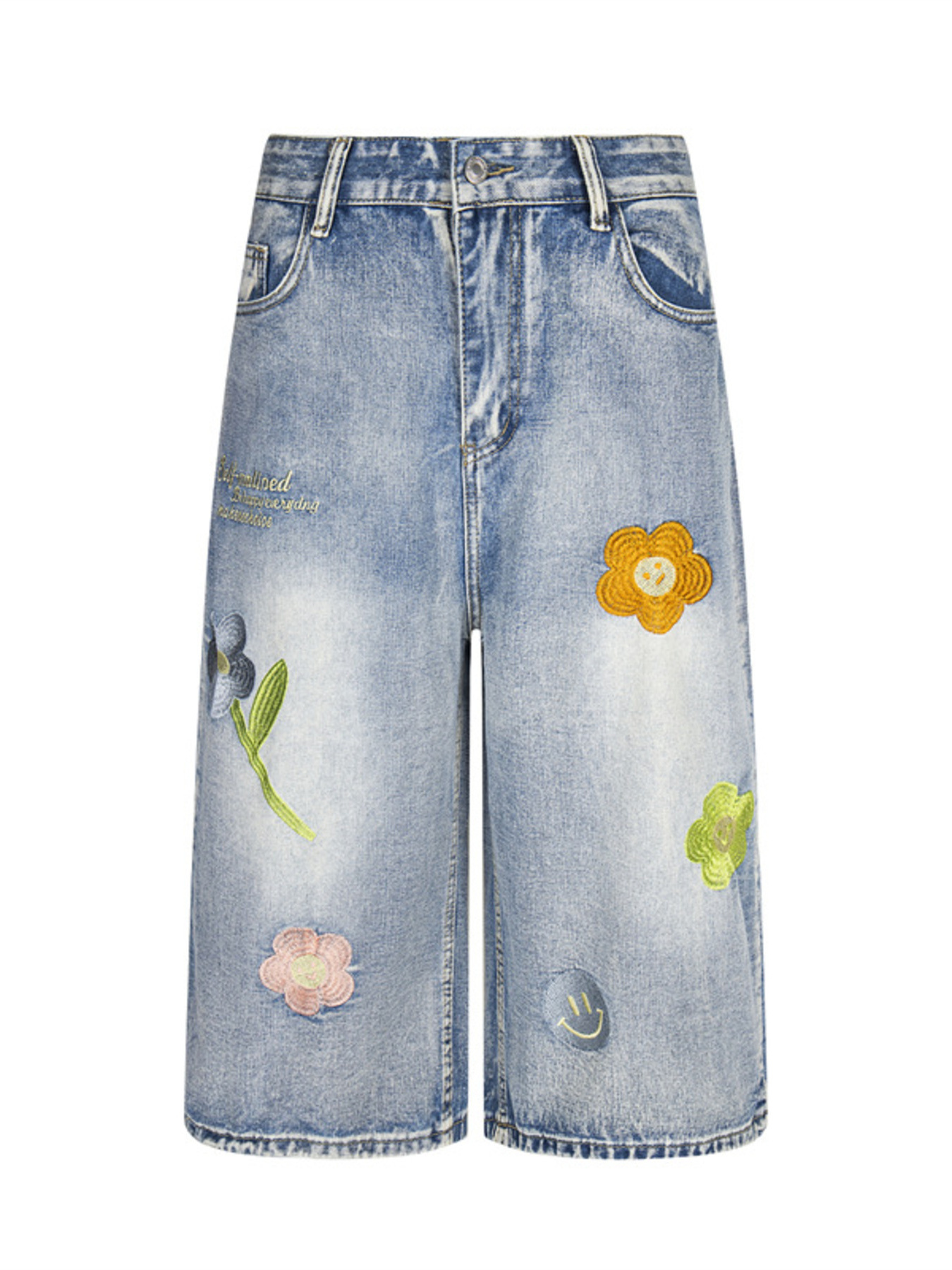 Men's Floral Embroidered Wide Leg Denim Shorts