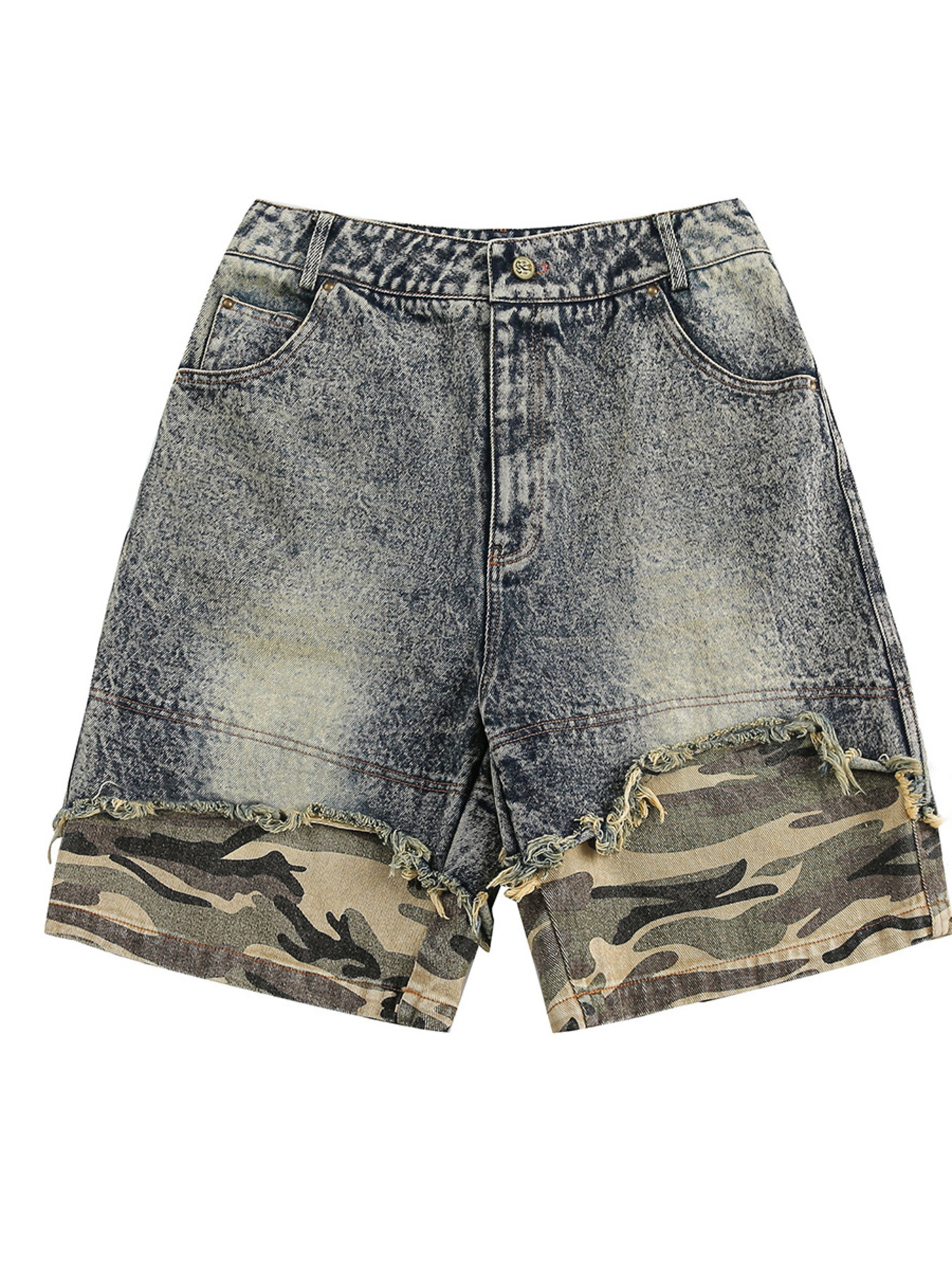 Men's Camouflage Patchwork Denim Shorts