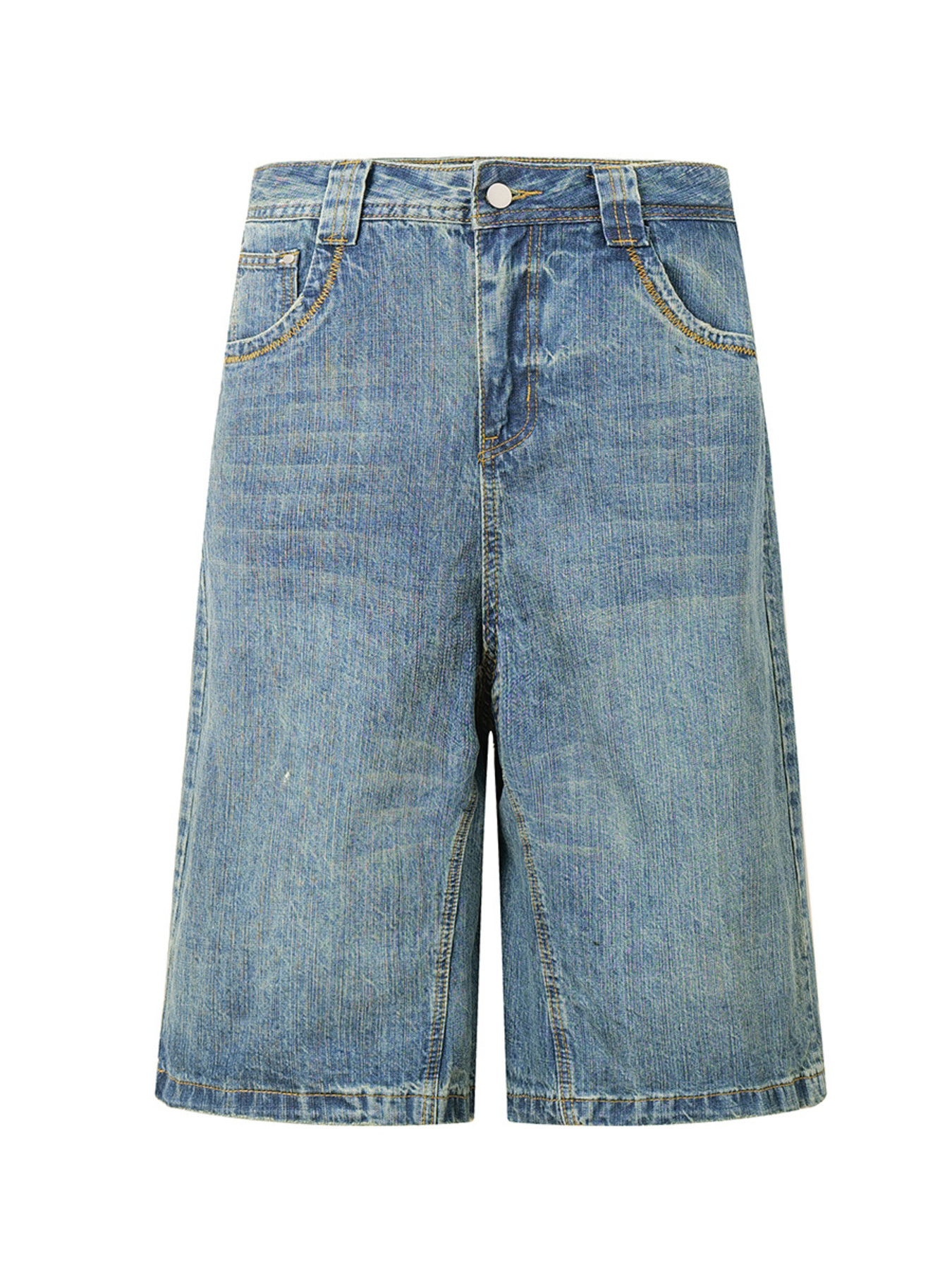 Men's Wide Leg Vintage Washed Denim Shorts