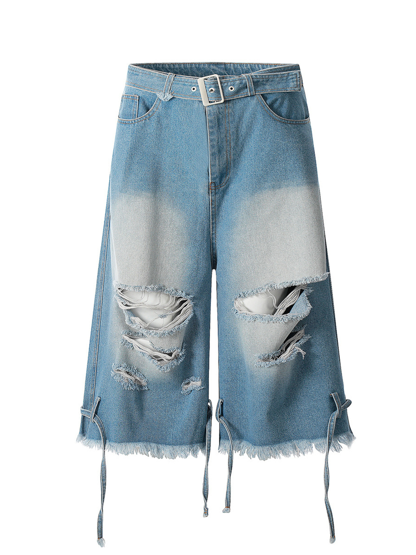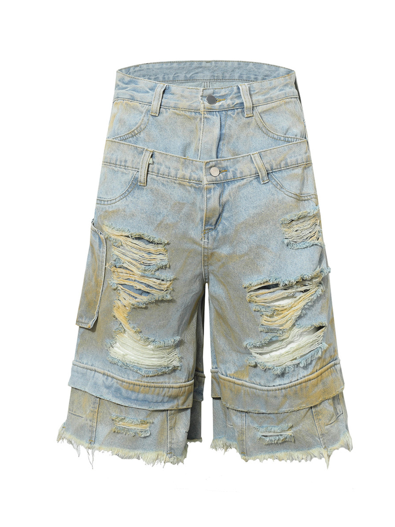 Men's Distressed Denim Shorts with Utility Pocket