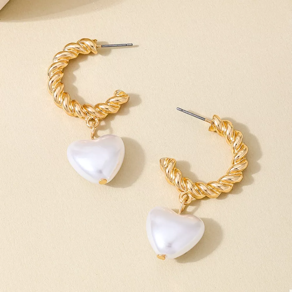 18K Gold-Plated Hoop Earrings with Heart Pendant