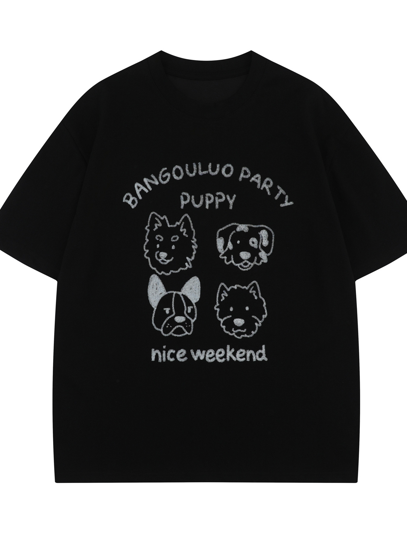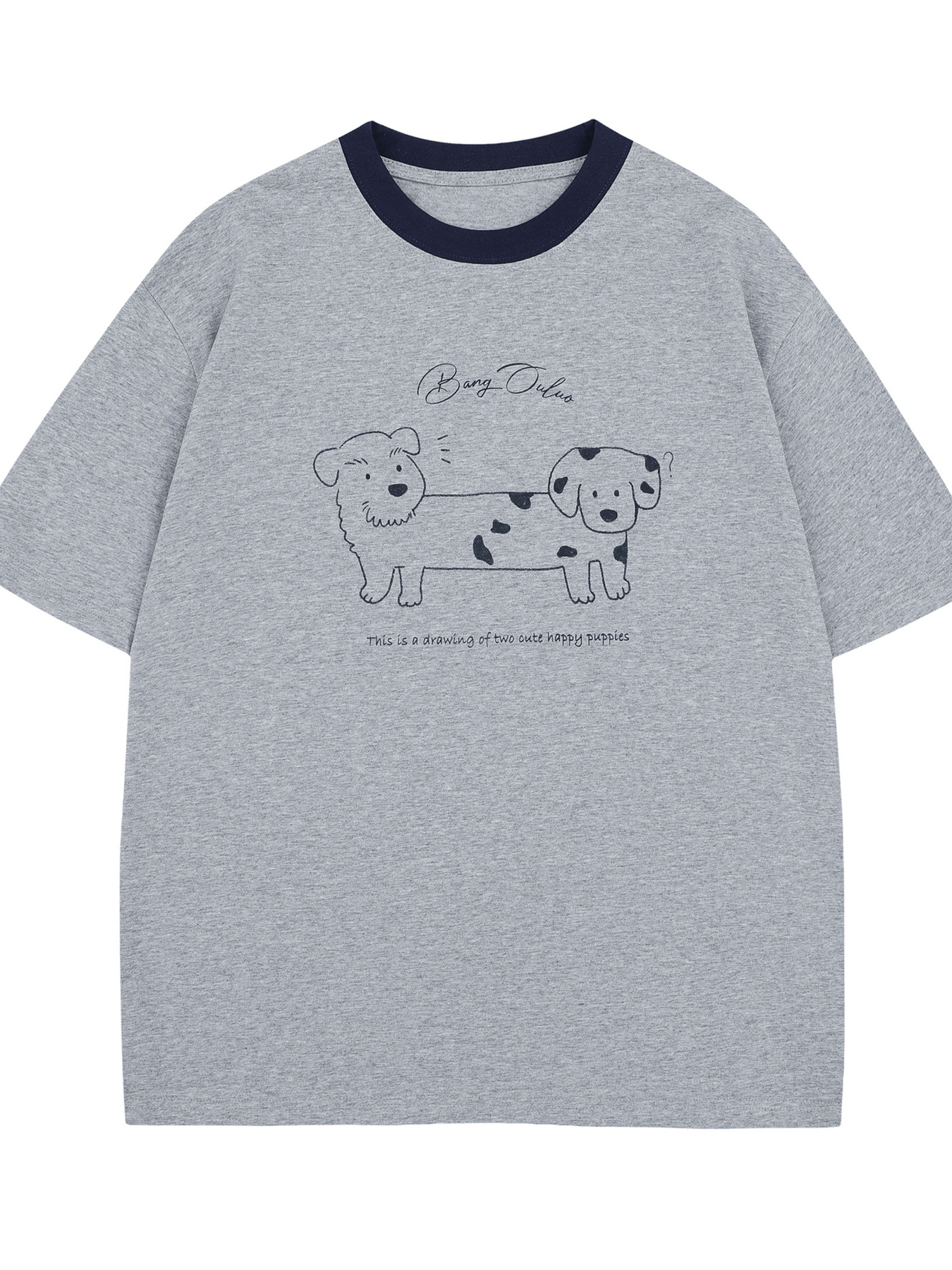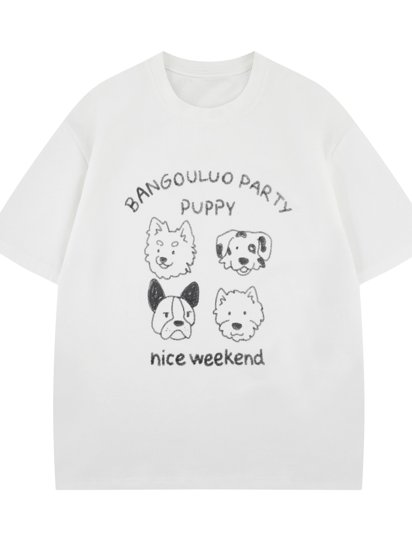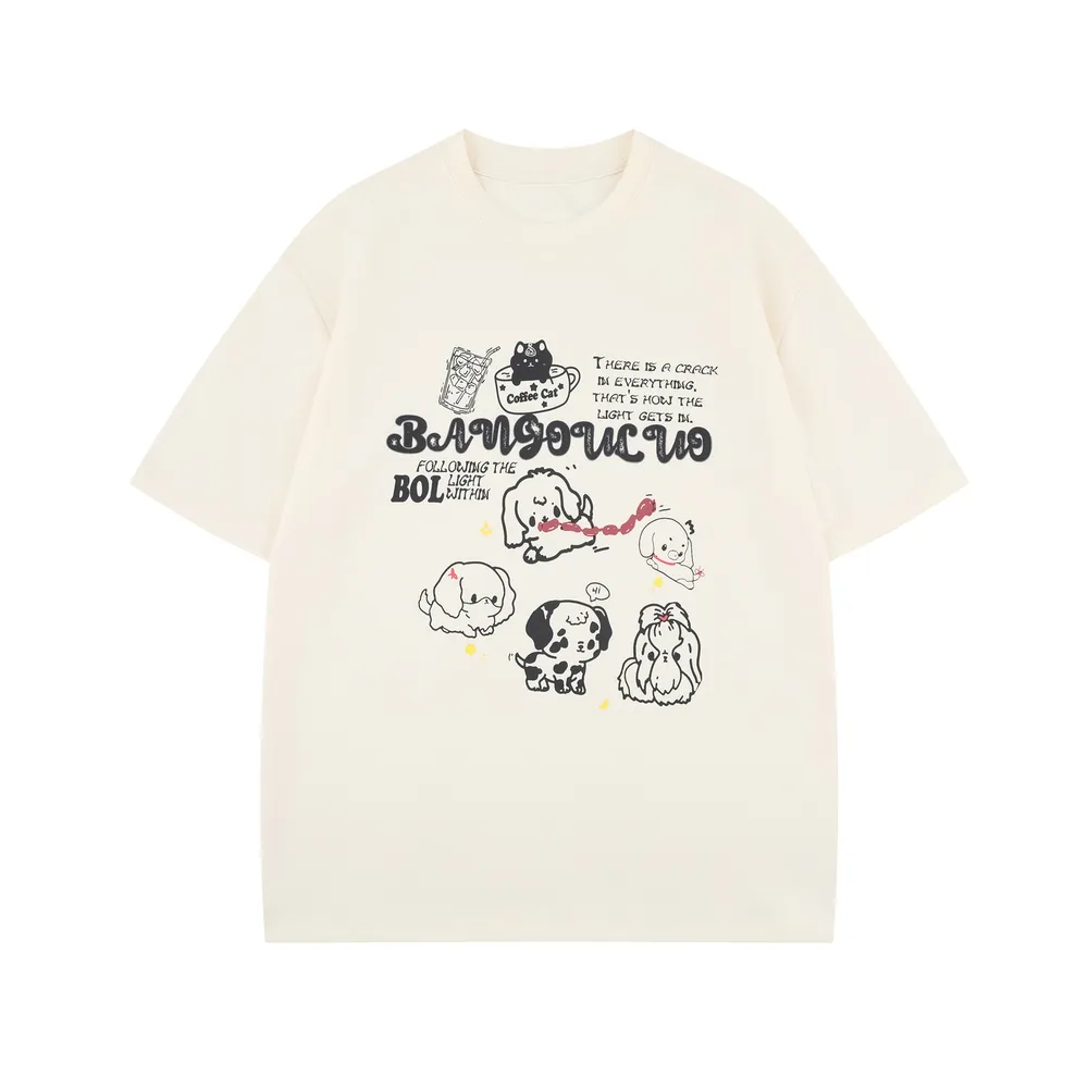 Men's Cute Cartoon Dogs Graphic Round Neck T-Shirt