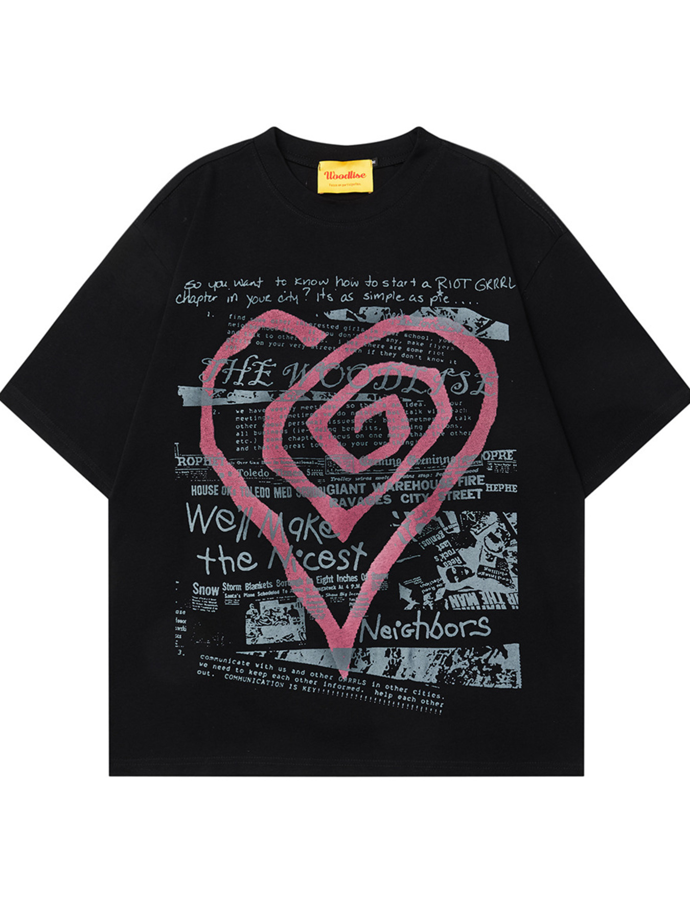 Men's Heart Graphic Round Neck Short Sleeve T-Shirt
