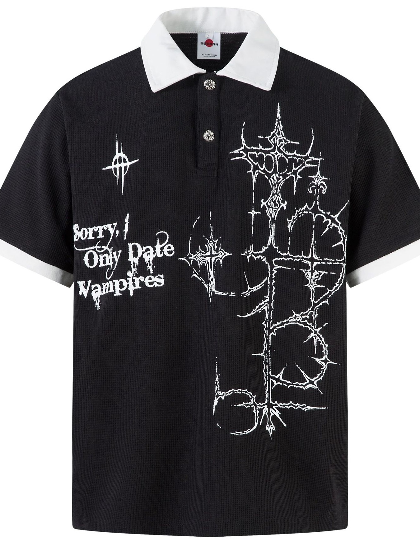 Men's Gothic Cross Graphic Contrast Collar Polo