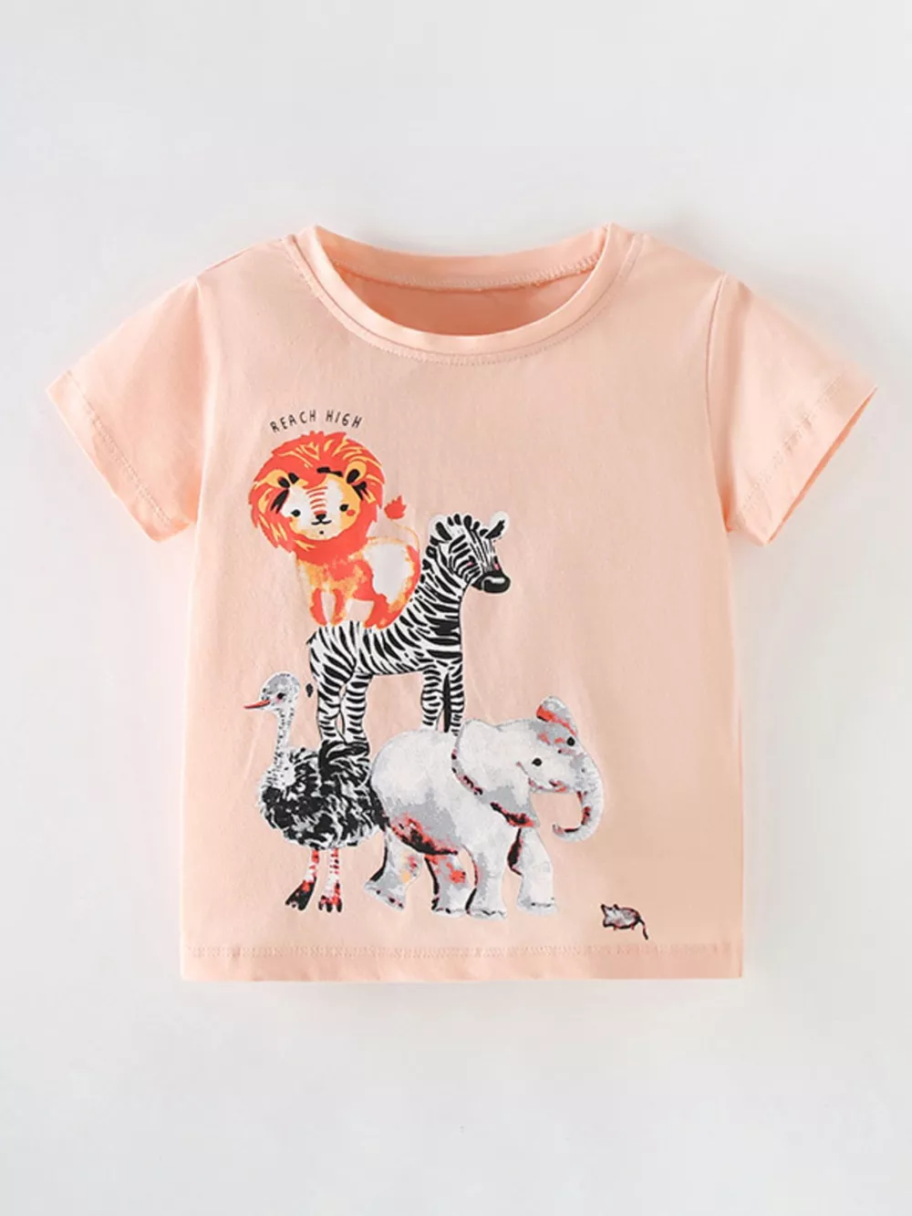 Children's Cartoon Animal Graphic Short Sleeve T-Shirt