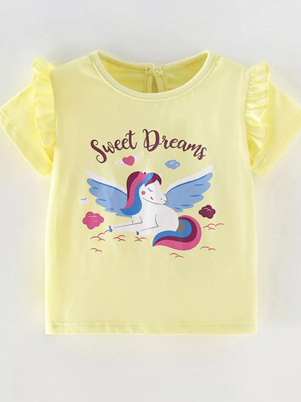 Children's Cute Unicorn Graphic Ruffle Sleeve T-Shirt