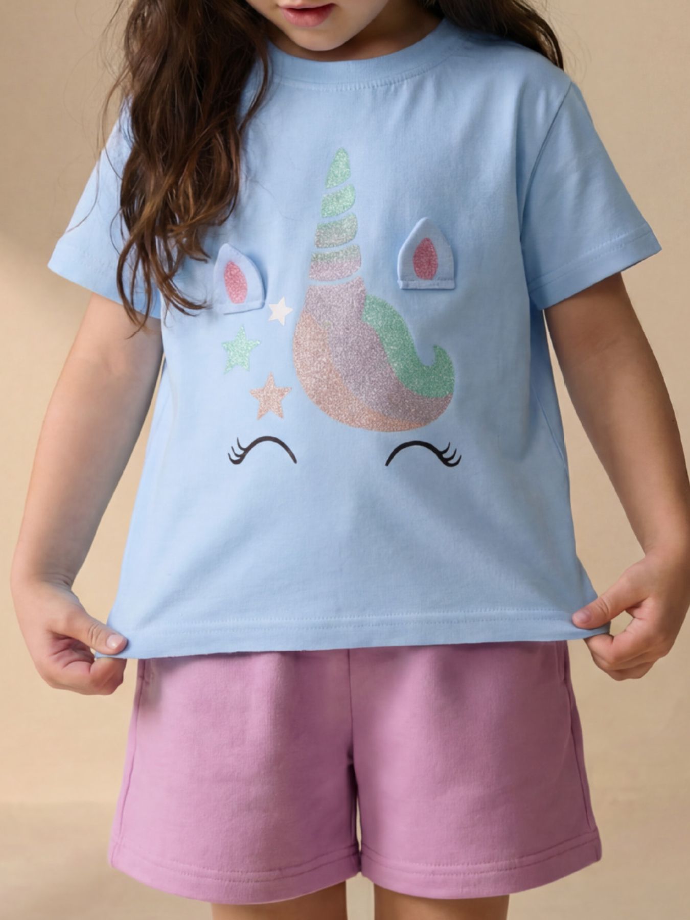 Children's Cute Unicorn Graphic Short Sleeve T-Shirt
