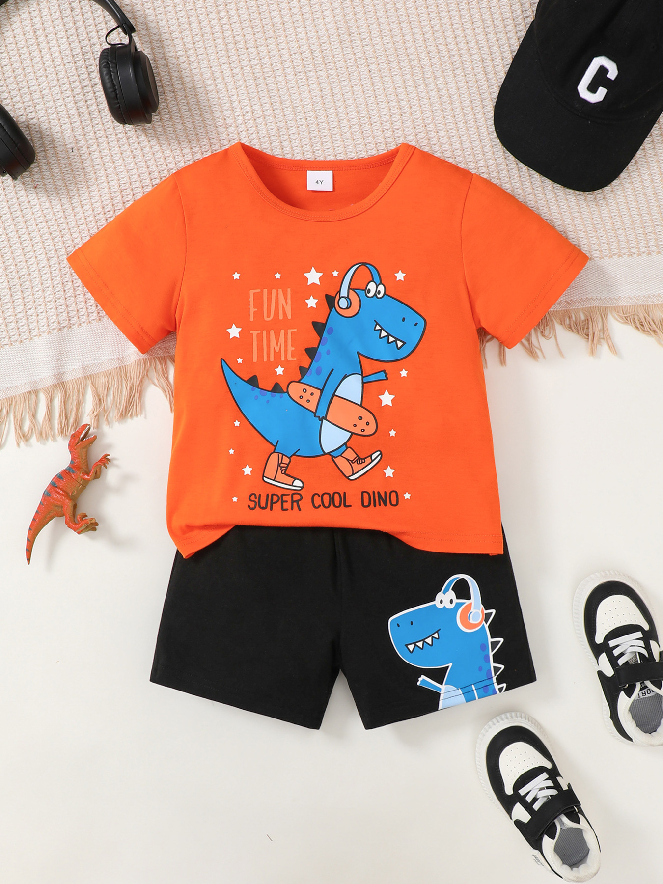 Children's Dinosaur Graphic Tee and Shorts Outfit Set