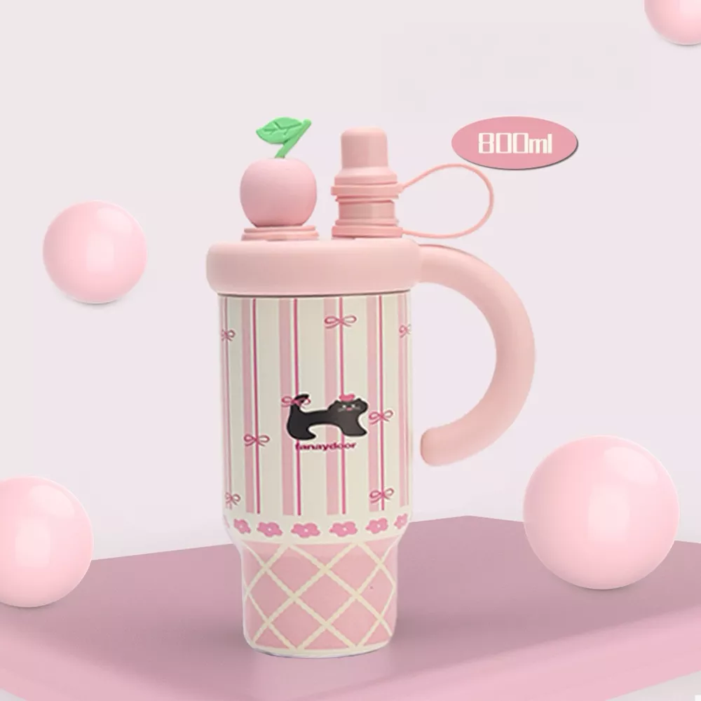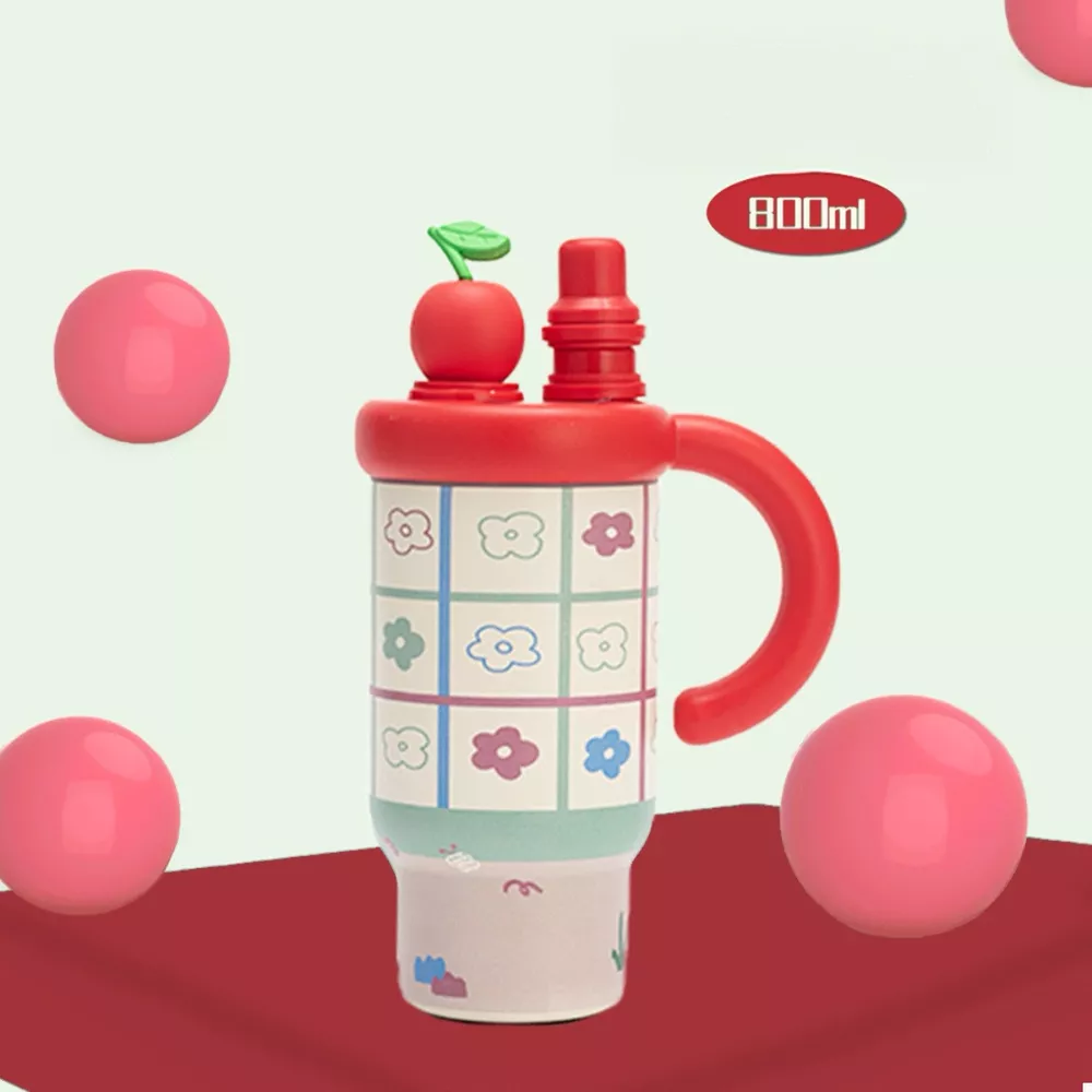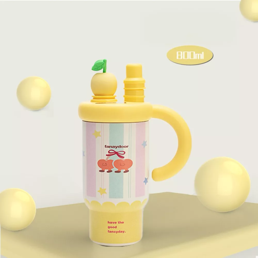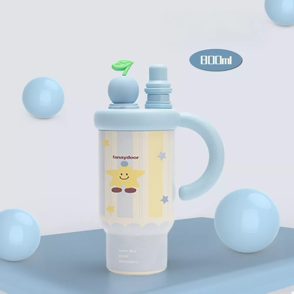Colorful Cartoon Water Bottles with Straw and Handle